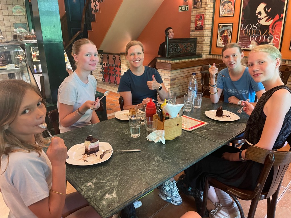 We decided to take a tuk tuk ride home instead of walking because of the heat, and the driver wanted to squeeze us all in together. It was a wild ride! It started pouring as we drove and in the tuk tuk, the sides are open. so we started getting wet which actually felt good. The driver was going a little fast over some of the bumps and noticed how we were all laughing. So he started playing it up, going over the bumps faster, and we were bouncing all over the place! A much more fun way to get home than walking through the heat/pouring rain.