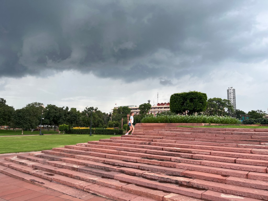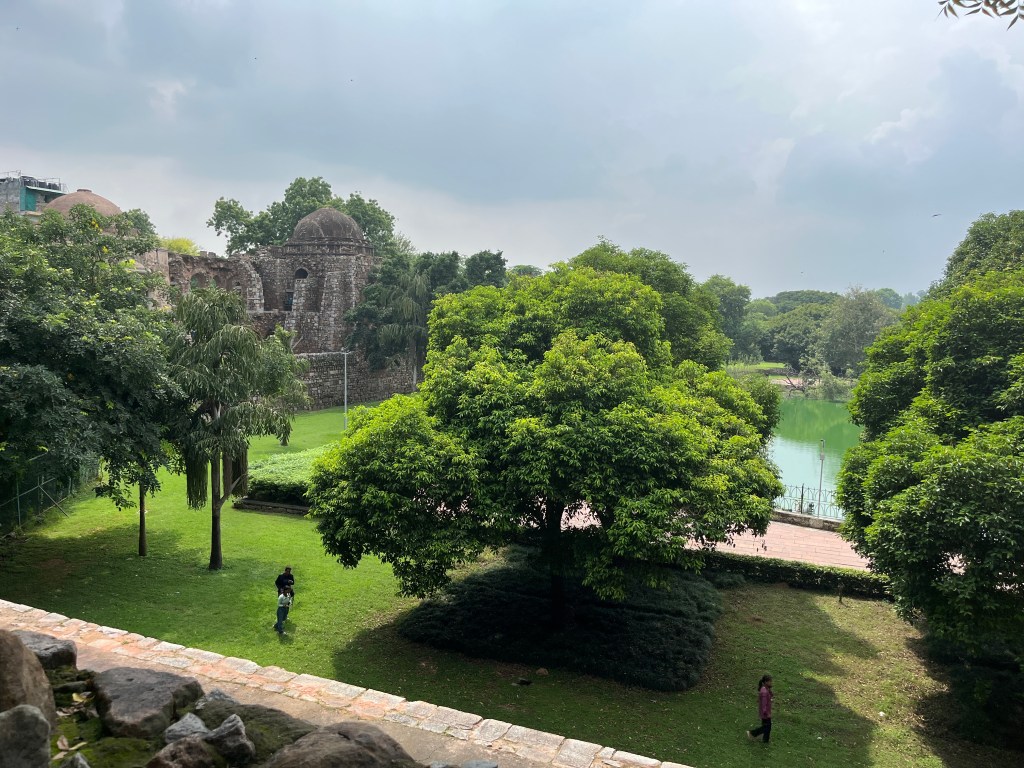 On Saturday, we decided to walk through Deer Park again so we could walk through Hauz Khas Fort. The humidity was unbearable! The monsoon season is wrapping up, and we’ve experienced the range of weather here this past week. The first day or two are quiet hot and humid with some rain, then it got “better” (less humid, no rain, not as hot) and then on Friday, in the 3 minutes it takes to get from the street to the classroom to pick up Luisa, it poured! A couple of kind mothers offered Olivia and I each spots under their umbrellas and then, by the time Luisa had collected her stuff, the rain had ended.