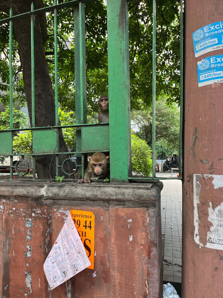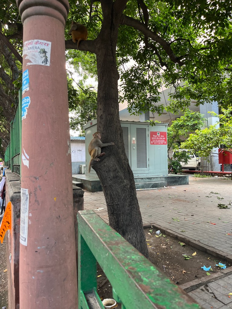 Afterwards we wanted to see the India Gate (war memorial) and Rashtrapati Bhavan (residence of the President), so I convinced everyone we could just walk there. A good idea in theory (it’s only 2 km to the first destination and then another 2.5km to the next) but it was so humid we were all pretty miserable by the end. I always prefer to walk when we are somewhere new because I feel like you get a better feeling for the place and you see things that you would otherwise just rush past while in a car/bus. But even I admit it was too hot for walking! We did get a little reward in that we saw a bunch of wild monkeys (Rhesus macaque) climbing in a tree along the way.
