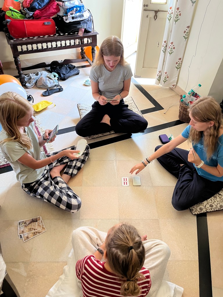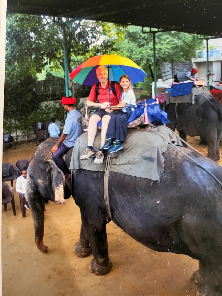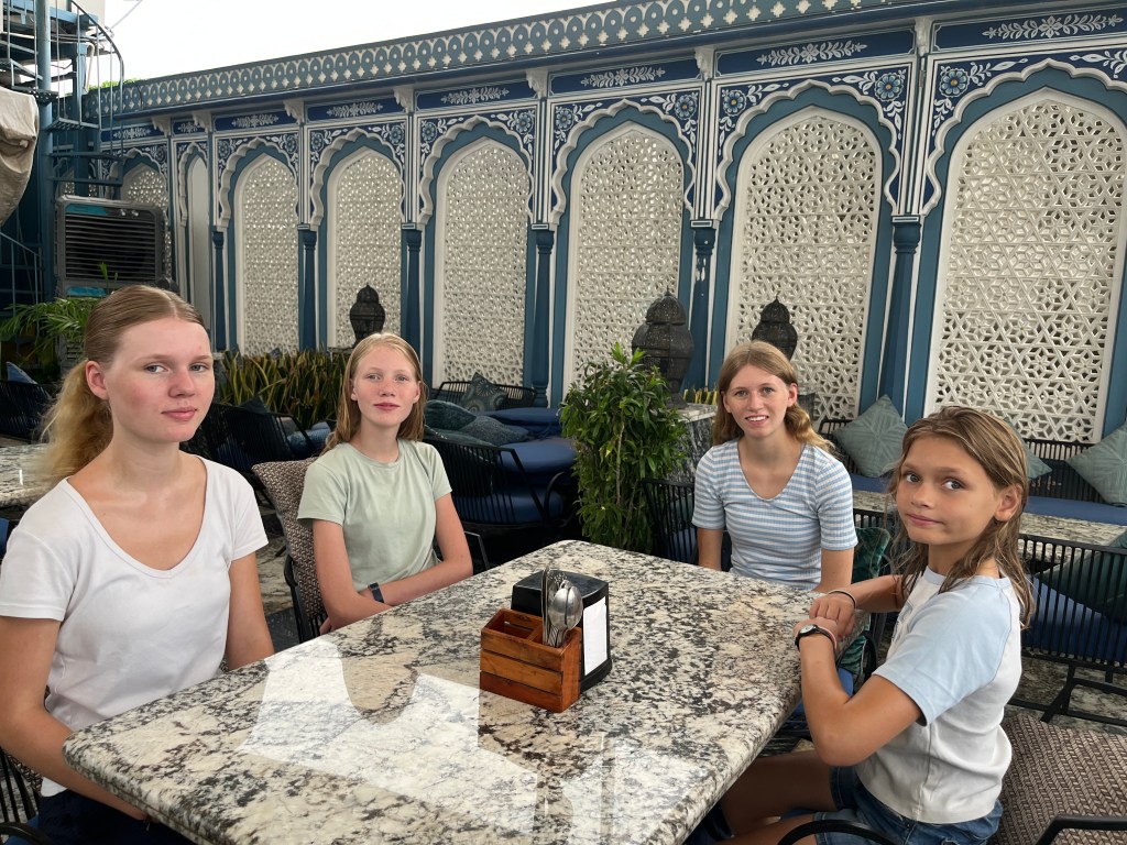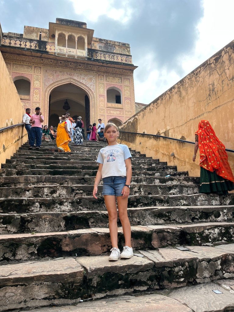 We spent five nights at the lovely Alsisar Haveli hotel in Jaipur, mostly taking the time to relax and recuperate. We arrived on Thursday afternoon and departed on Tuesday morning, and it wasn’t until Sunday morning that everyone was feeling healthy enough to sightsee. The first few days we mostly hung out at the hotel, enjoying the pool and amazing service in their restaurant. One evening, I took the girls out to dinner at a less-than-stellar restaurant that had some beautiful decor. We also had a mini-celebration for Charlotte on her birthday. We had bought a few gifts and decorations, and the hotel staff so kindly set up this cake and flowers for her. Unfortunately, she still wasn’t feeling very well so we didn’t do anything else that day. Otherwise, we played games, enjoyed screen time and went swimming. It was really nice to be in such a relaxing location for a few days!