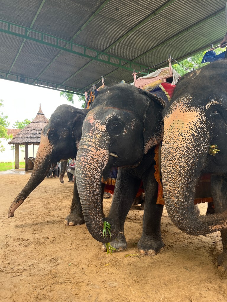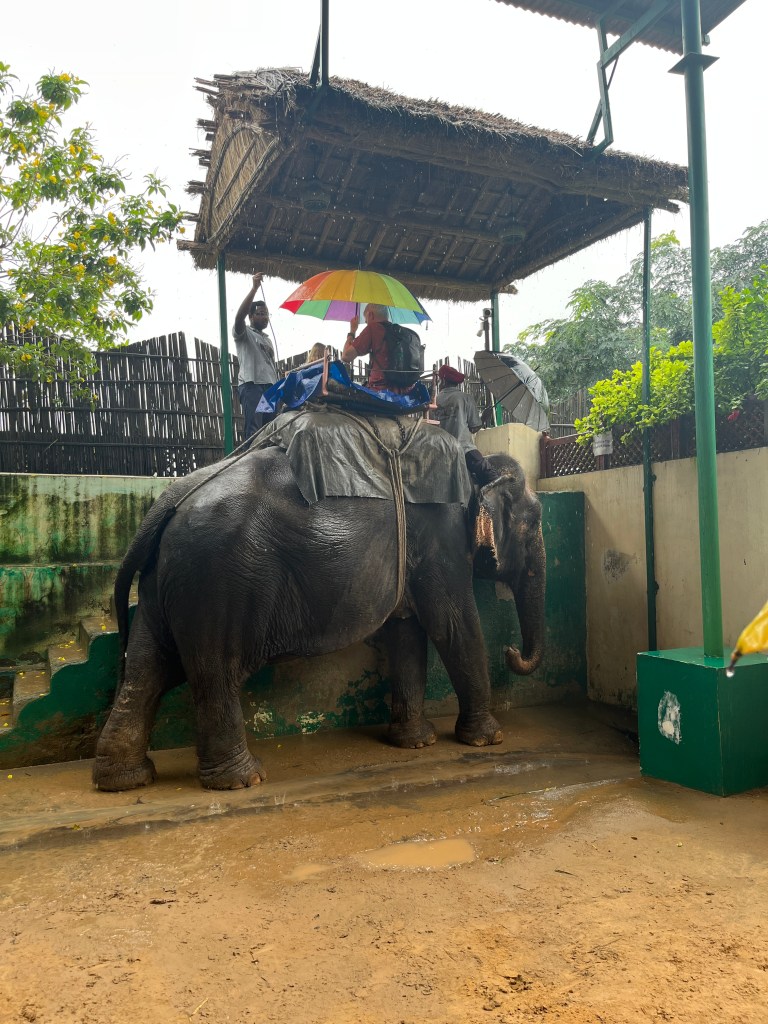 We had heard from our hotel that there was an “Elephant Village” nearby which I thought was a sanctuary that I had found online. So on Monday, we called our faithful tuk tuk drivers to ask them to take us to the elephant village to check it out. When we got there, it looked much smaller than what I had seen and they offered us elephant rides, a chance to feed or paint the elephants and a few other activities that felt not quite like what a sanctuary would offer but also peaked our interest. And the animals seemed well cared for, so we went ahead and rode them. It was a very neat sensation, even in the pouring rain, but we did leave feeling a bit guilty, especially after I read more about the damage that riding elephants does to their backs. I looked at their website and it seems as though they are trying to protect the elephants and give them a good life. We may never know exactly how well they are treated there, though of course we hope they are treated kindly, and have become a bit more wary of what we agree to before getting all the information. Everything is a learning opportunity!