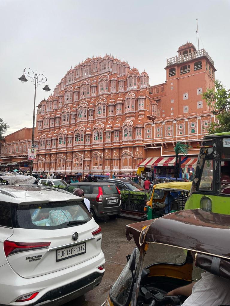 Lastly, we had a very quick stop outside Hawa Mahal. I think we should have gone into this monument, but we just couldn’t keep the sightseeing going. We kind of rushed by it, so didn’t get the full effect. The main purpose behind the construction of this palace was to allow the ladies of the royal family and the court to observe the busy streets of the Johari Bazaar from the many carved windows of the palace, without being seen themselves, and it would have been neat to see it from their perspective. But alas, it was not meant to be. Long-term travel with kids/teens involves a lot of compromise (like everything in life) and we did not want to push the kids any more that day. We spent the rest of the day eating dinner and relaxing at the hotel.