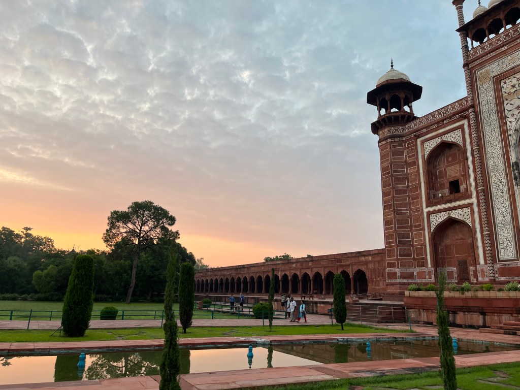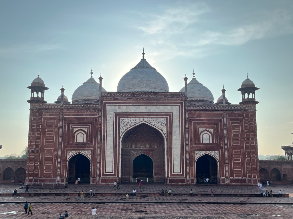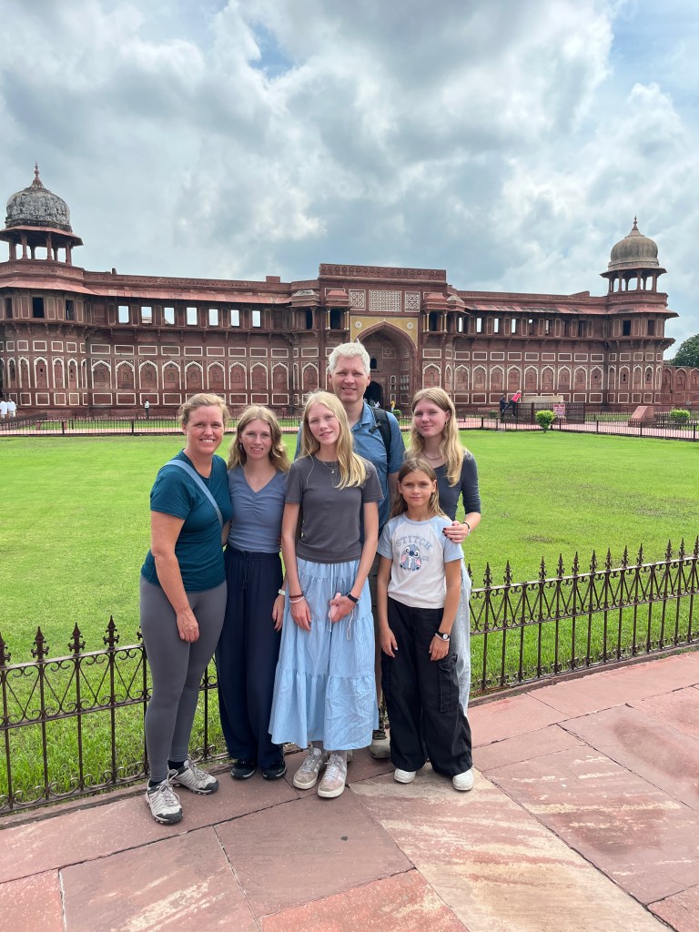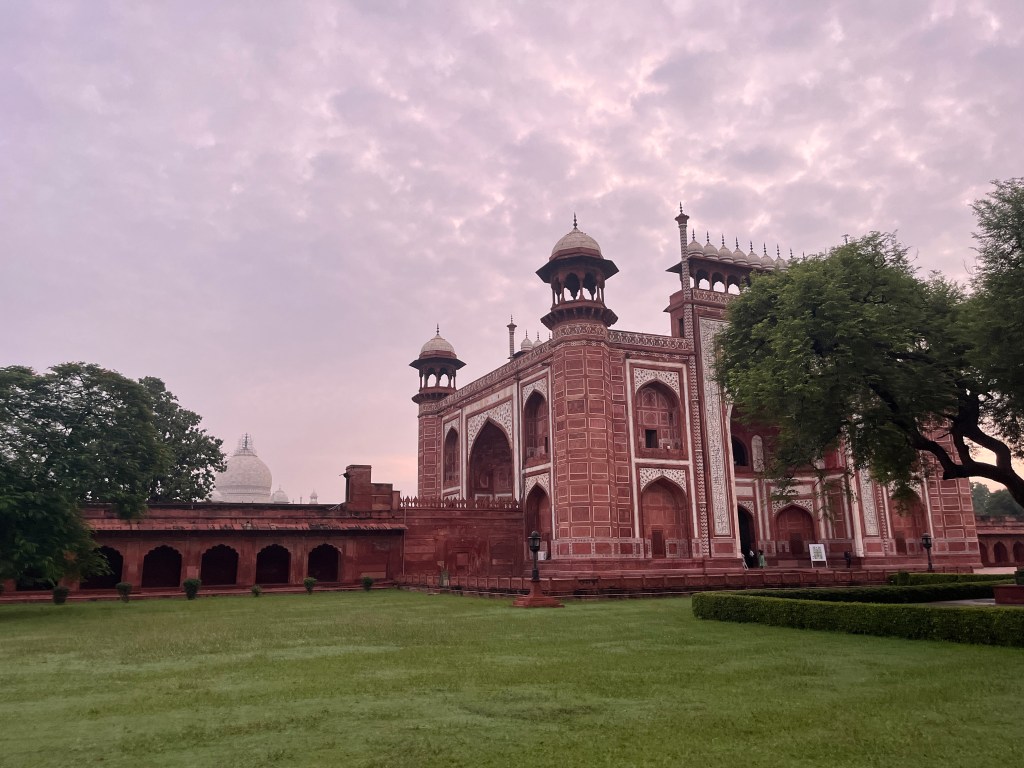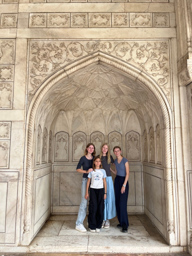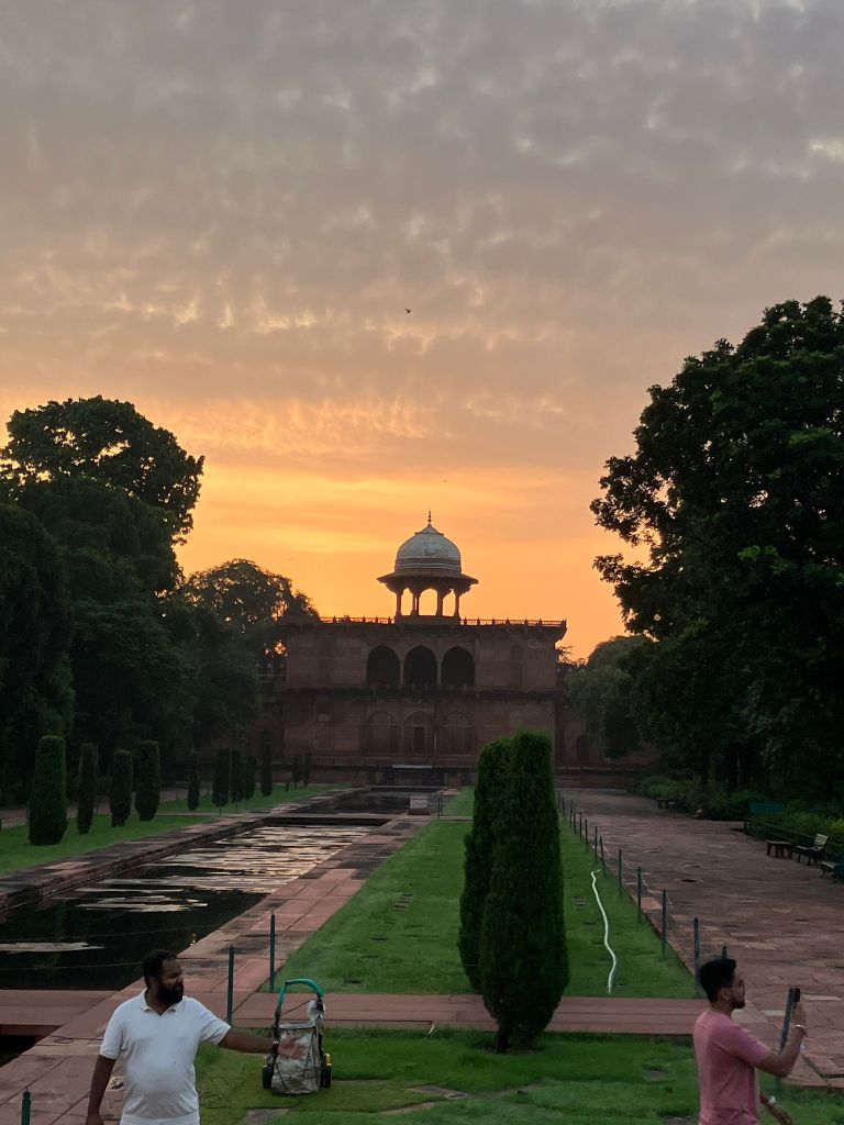 We arrived in Agra on Tuesday afternoon and spent the rest of the day doing schoolwork and relaxing. On Wednesday we didn’t do any exploring but rather focused on schoolwork and enjoying the amenities of the Courtyard Agra hotel. Then Thursday was the big day and the reason we had come to Agra: our sunrise tour of the Taj Mahal! I had booked a 5:30am pick up, and we all spent the days leading up crossing our fingers that the weather would be clear since India is still deep in the monsoon season. But we got so lucky and it was the clearest morning we had seen in awhile. It was rough to get up sop early (4:45am alarm!) but so worth it! It was less crowded, less hot and the light was beautiful. I found our guide through Get Your Guide, and he did a very good job explaining enough so we all learned but not too much to overwhelm us. It was a private tour so we got to go at our own pace.