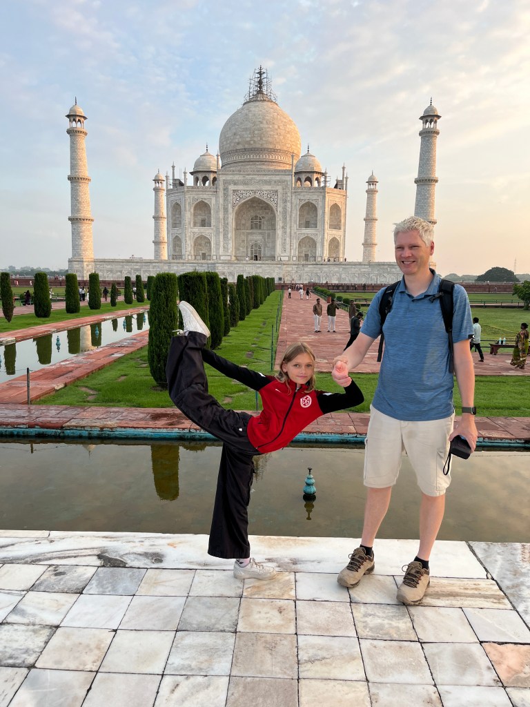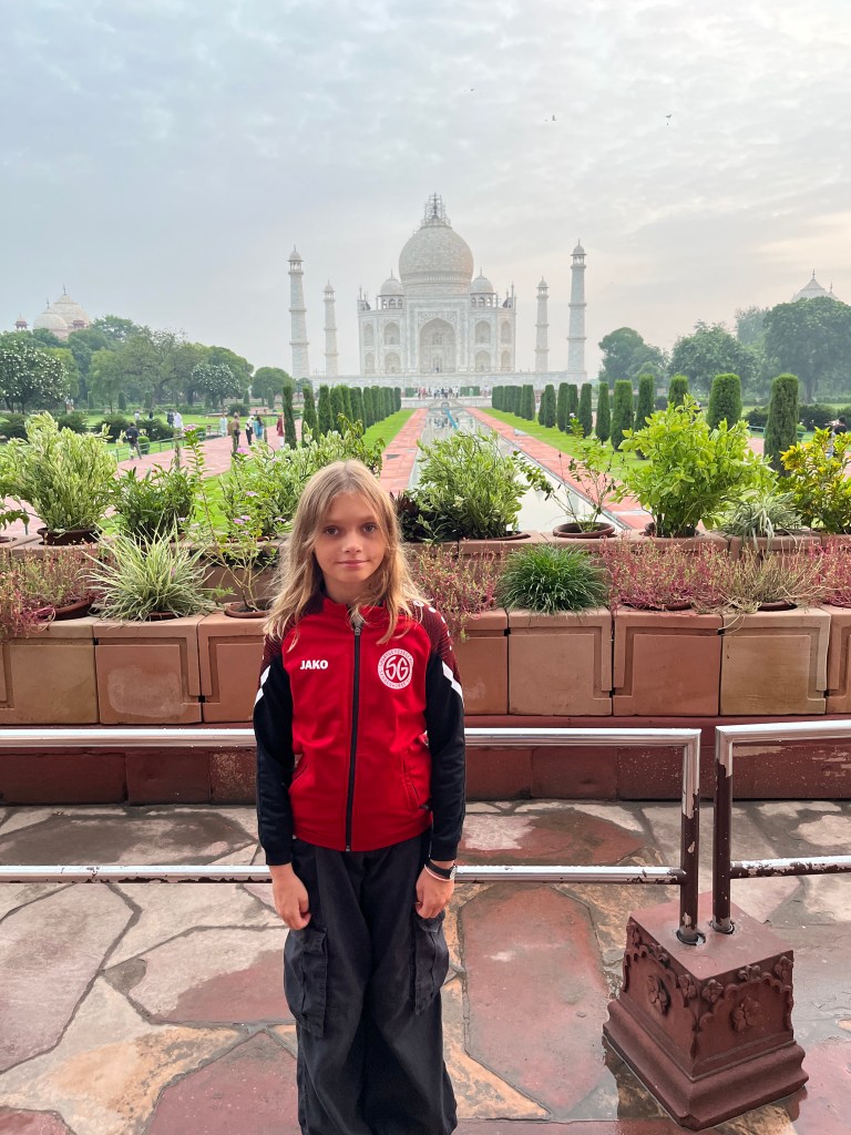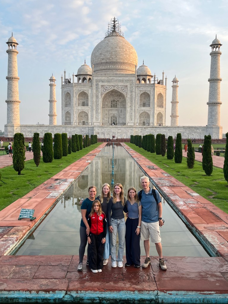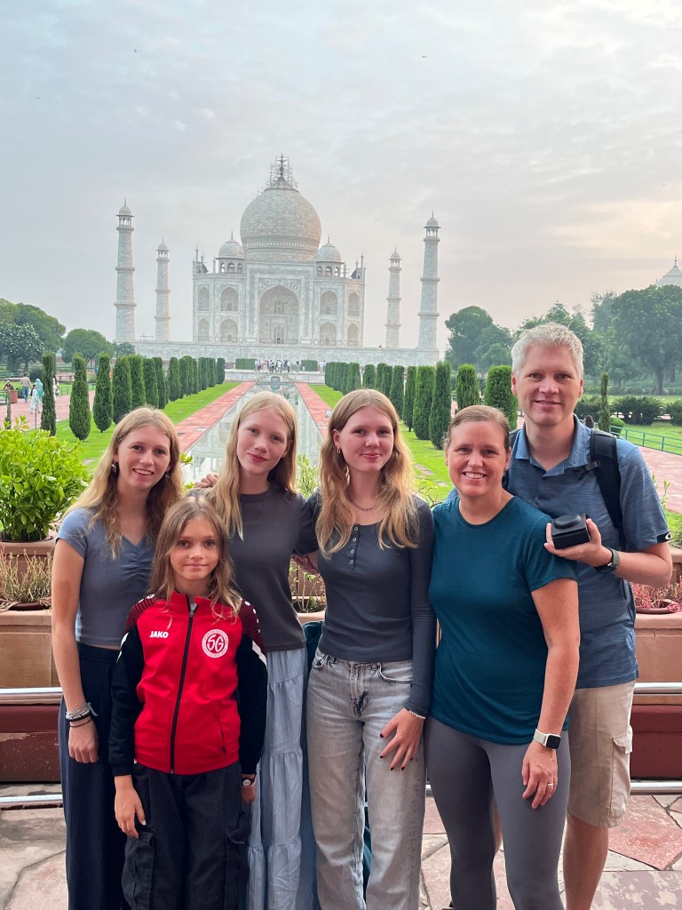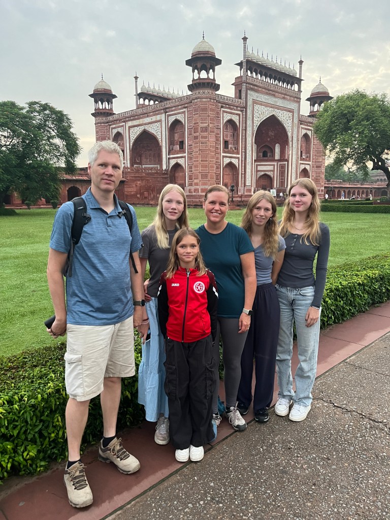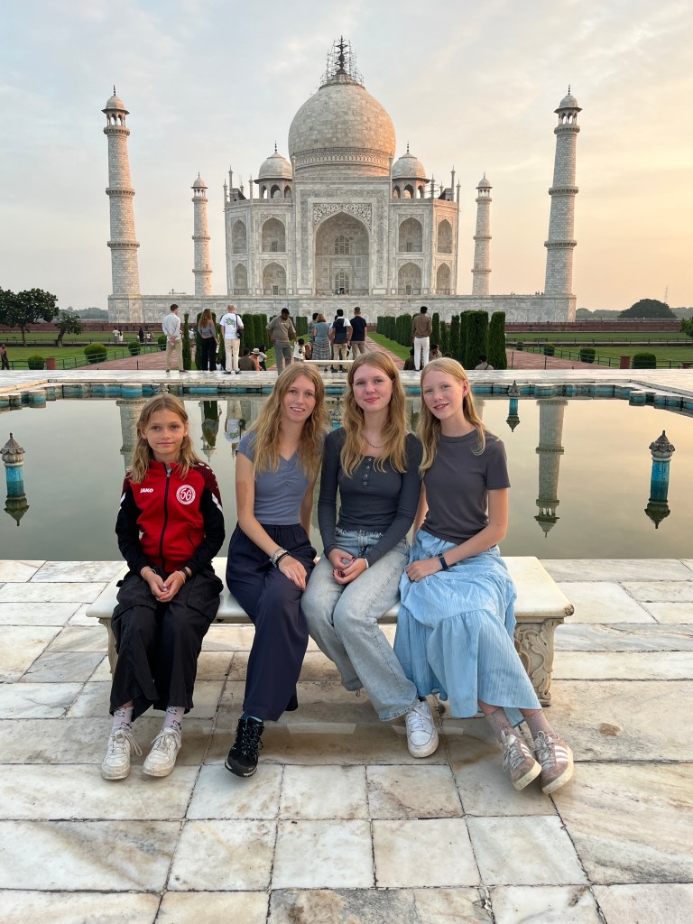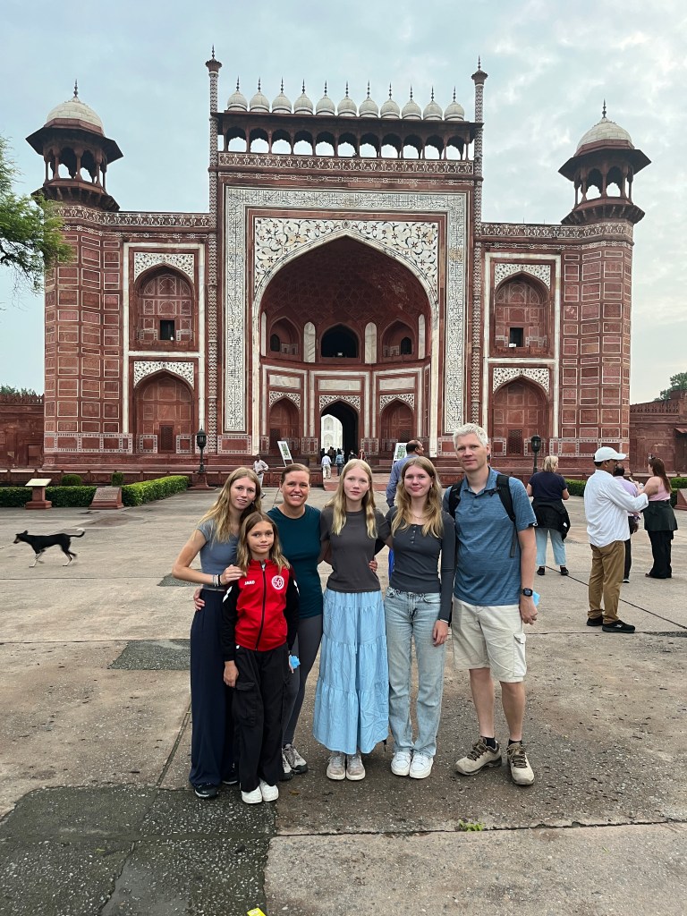 We arrived in Agra on Tuesday afternoon and spent the rest of the day doing schoolwork and relaxing. On Wednesday we didn’t do any exploring but rather focused on schoolwork and enjoying the amenities of the Courtyard Agra hotel. Then Thursday was the big day and the reason we had come to Agra: our sunrise tour of the Taj Mahal! I had booked a 5:30am pick up, and we all spent the days leading up crossing our fingers that the weather would be clear since India is still deep in the monsoon season. But we got so lucky and it was the clearest morning we had seen in awhile. It was rough to get up sop early (4:45am alarm!) but so worth it! It was less crowded, less hot and the light was beautiful. I found our guide through Get Your Guide, and he did a very good job explaining enough so we all learned but not too much to overwhelm us. It was a private tour so we got to go at our own pace.