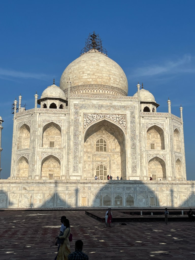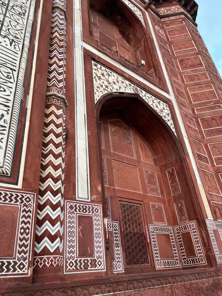 We entered through the West Gate, into the Jilaukhana (courtyard) towards the Great Gate (or “Darwaza-i-rauza”) which was interesting and a great photo opportunity. It took 22 years to build the Taj Mahal, symbolized by the small domes on the top of the Great Gate. It also had some very impressive and intricate floral and geometric carvings. It is a true masterpiece of Mughal architecture!