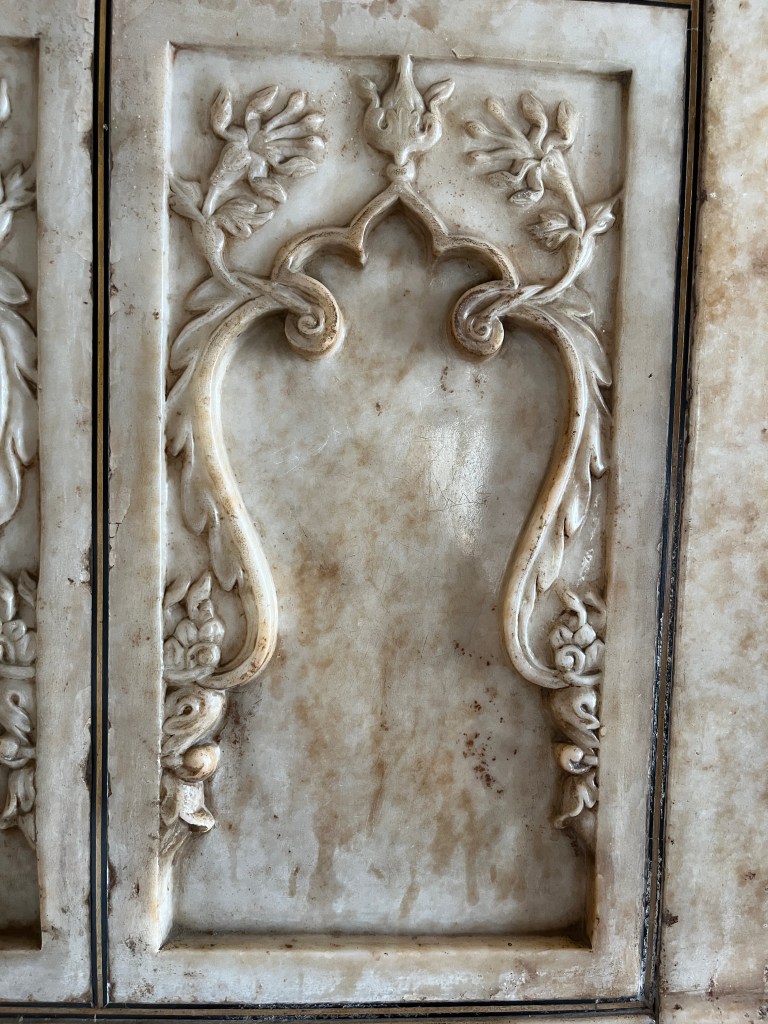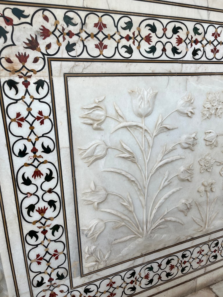And a closer look at the amazing craftsmanship. We were in awe! No photos allowed inside the mausoleum but there you could really see the very impressive “pietra dura”, a technique of inlaying precious and semi-precious stones into the marble to form complex designs.