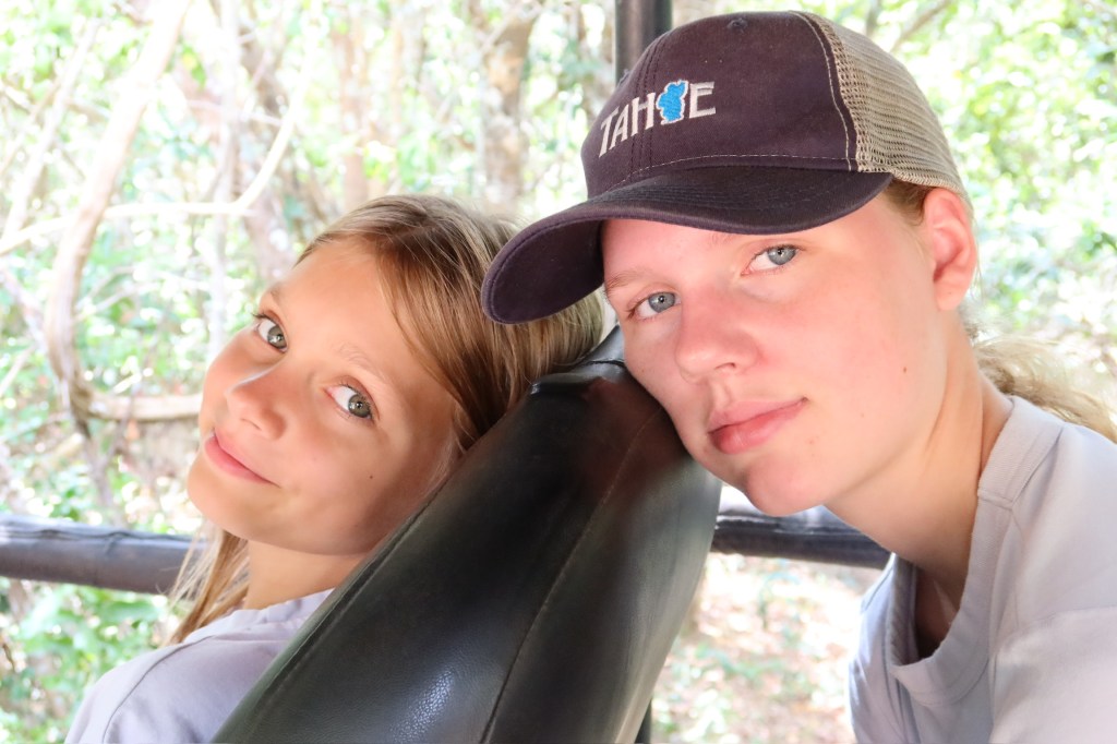 All of which was amazing. But the highlights were the elephants and the leopards. First we saw a large male leopard emerge from the forest and walk across the path in front of us not more than 10 meters away. It was breathtaking to see how powerful and muscular he was! Later on another jeep spotted a female napping on the path and everyone converged there. She was harder to see and it was crowded, but still beautiful. The first elephant we saw as we were watching a buffalo. Out of the corner of our eye, we saw a male elephant emerge from the forest and walk into the shallow lake. We spent a long time watching him use his truck to grab some wet grass, shake it off and eat it. I could have watched him all day! Later on, on our way out of the park, we saw three adults and two baby elephants off in the distance. And then, when we were almost out of the park, we had a scary encounter (but I don’t think we were in any actual danger). We saw a young male elephant pretty close to the road, and our driver/guide warned us that he might charge the jeep because he is in a period of high reproductive hormones, heightened aggression, and increased sexual behavior. Well, he did just that! He ran up the small bank and towards the jeep, but our driver knew just what to do. He sped up and then stopped abruptly, and the elephant stopped and went on his way. A few minutes later, we saw the female elephant that he was likely looking for. What an amazing opportunity to experience wildlife in their natural habitat, doing what they do. I think this is an experience that will stay with all of us!