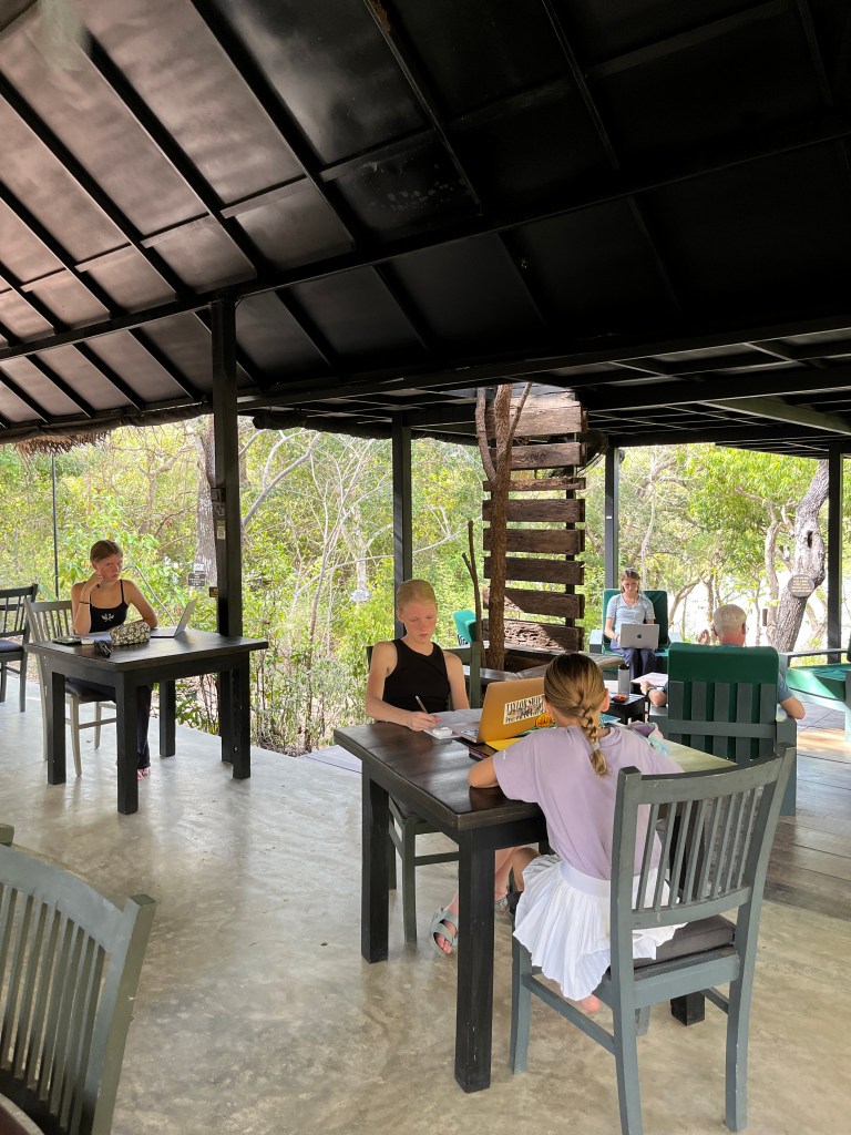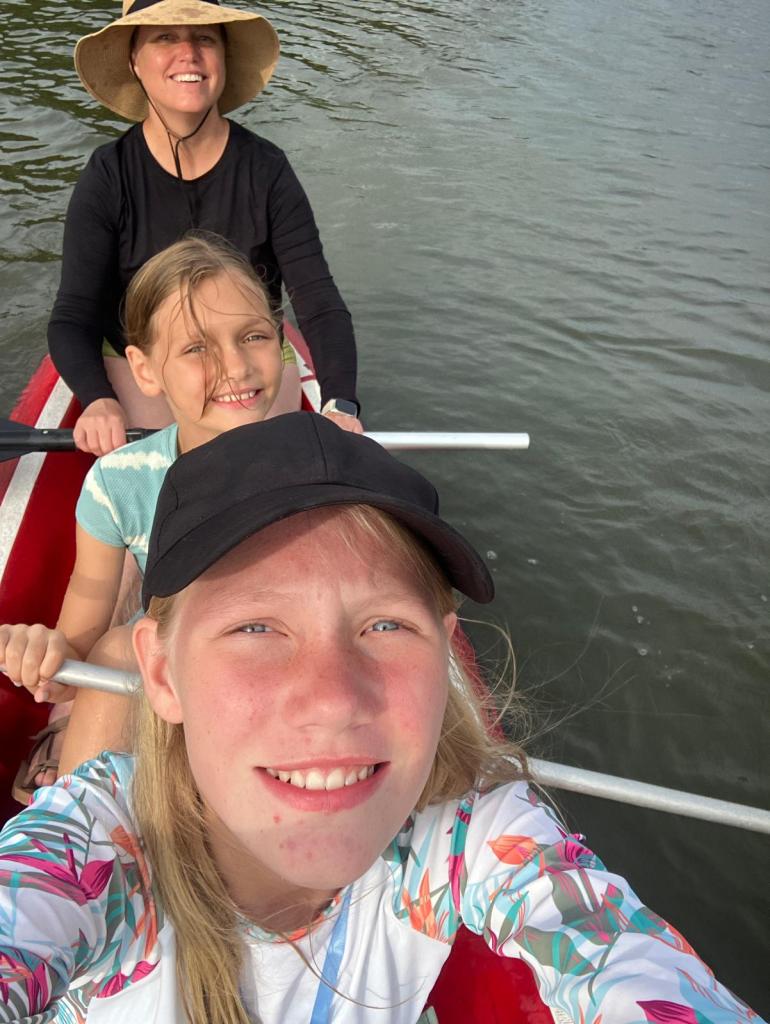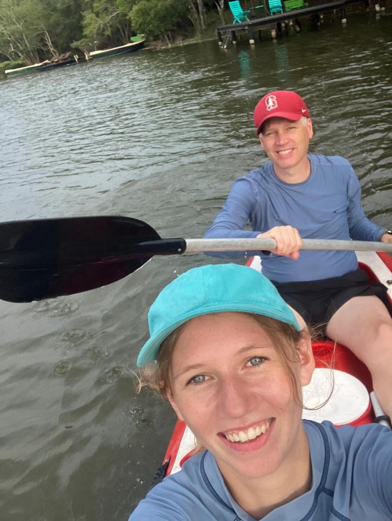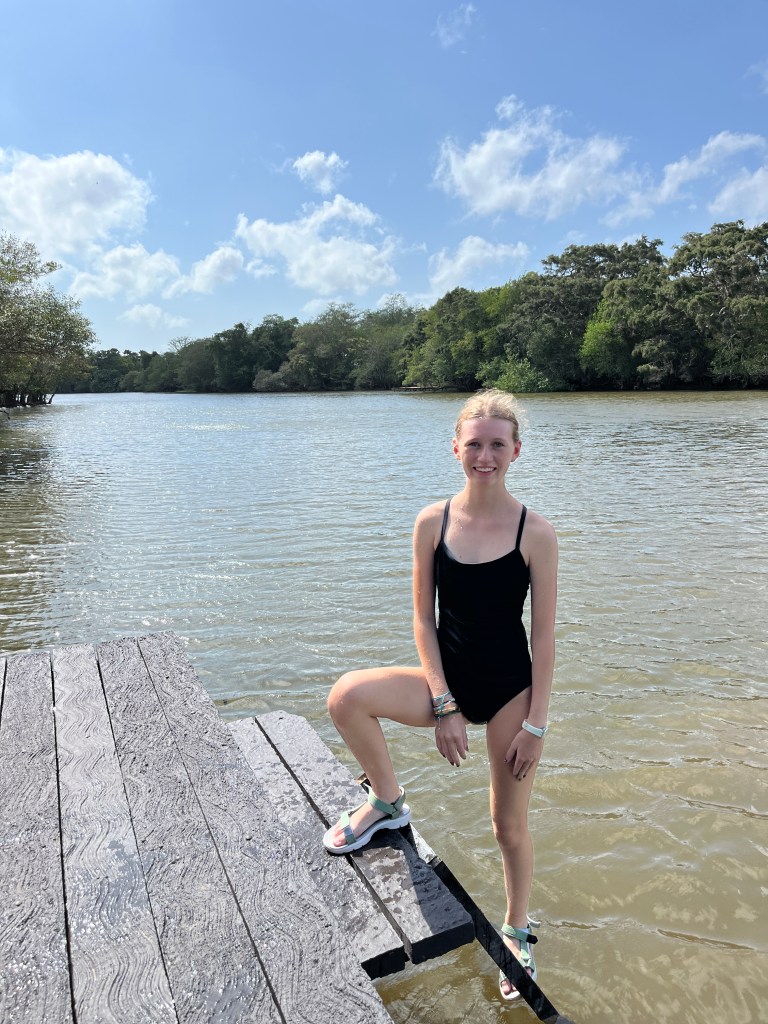 On Tuesday we did schoolwork in the morning and then relaxed in the afternoon. We saw in the river, read books in the hammocks, rented a couple of kayaks for an hour, watched the monkeys jump from tree to tree and just chilled. It was wonderful! There are several neat little places to sit and relax throughout the property. And the owner and staff are kind and helpful. They serve delicious, fresh, traditional food family-style which has been a wonderful way to get to try new foods.