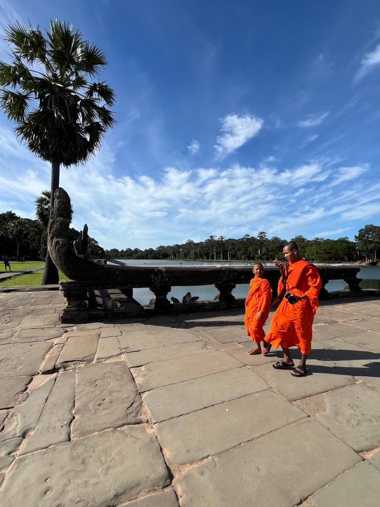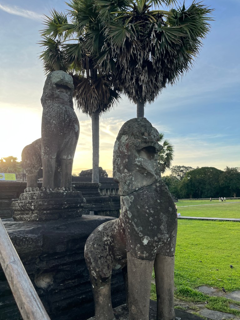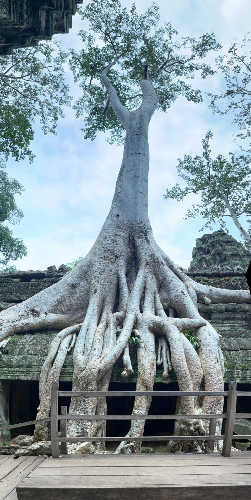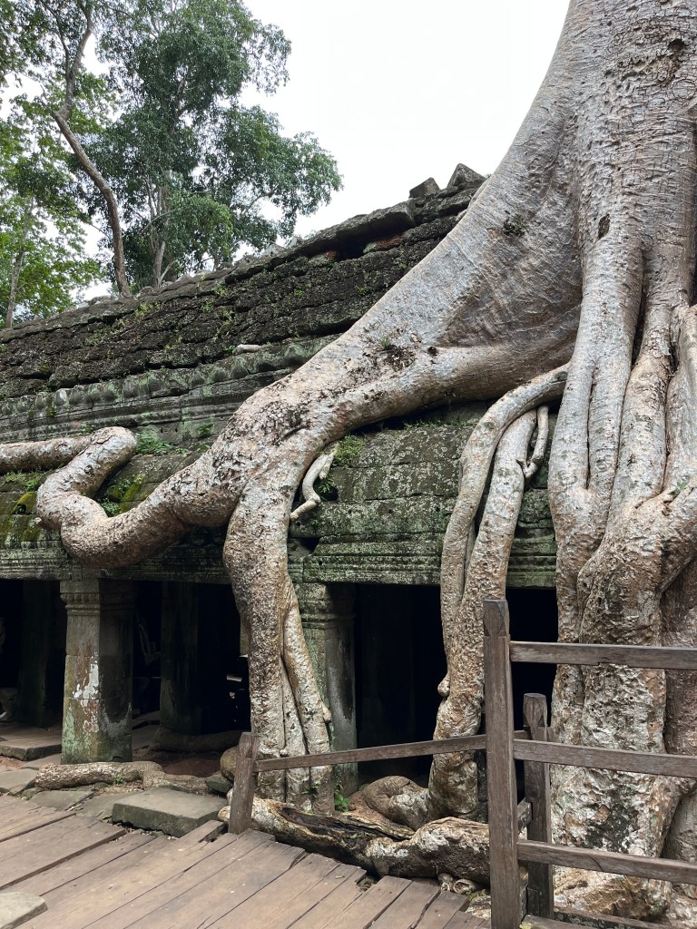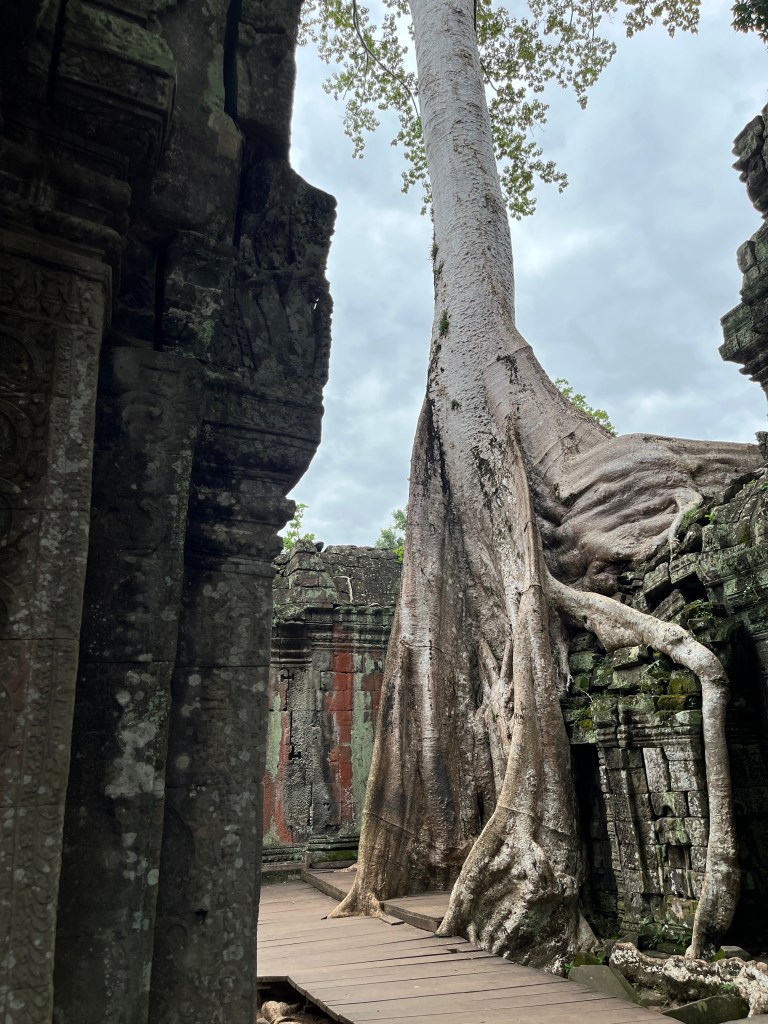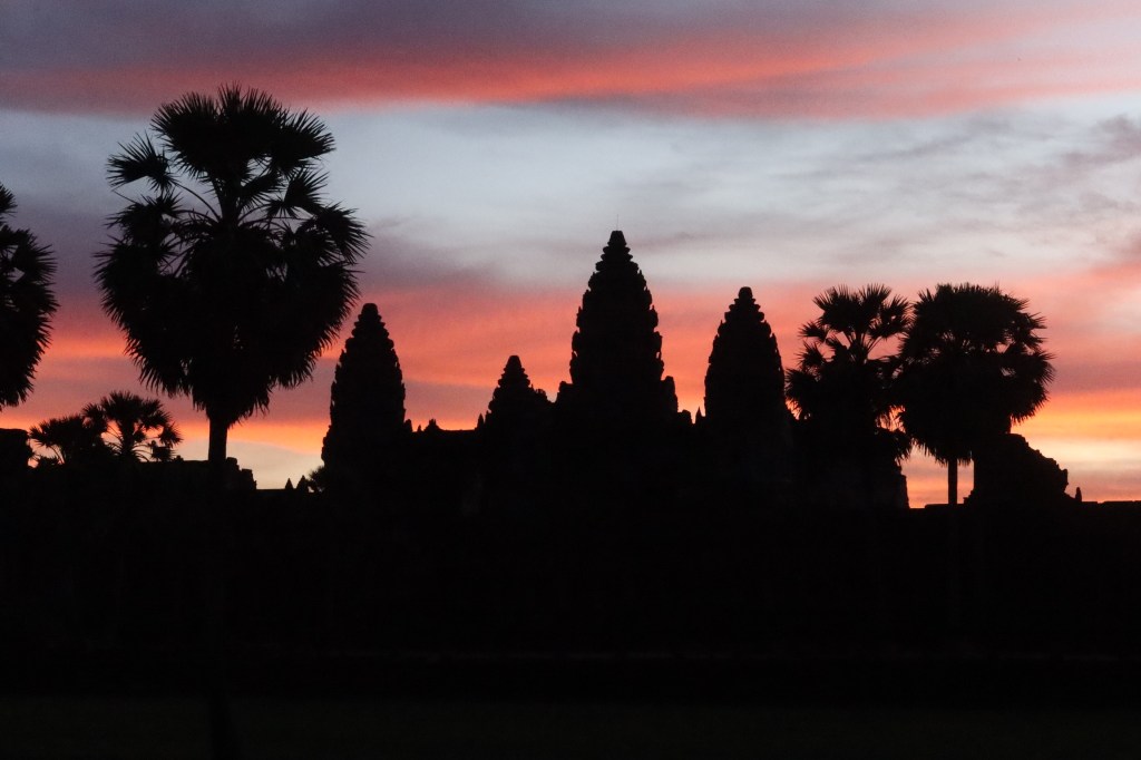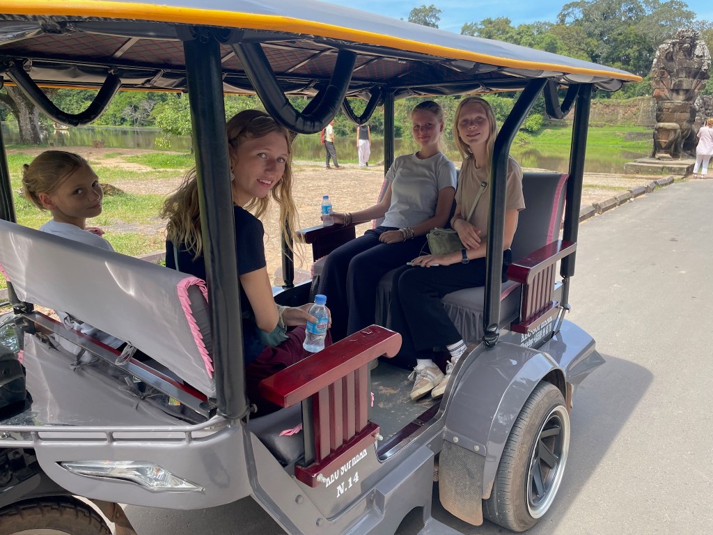 On Thursday morning, a guide came to our hotel for a 5am pick-up to head out to watch the stunning sunrise at Angkor Wat. It was crowded but well worth it! We don’t see many sunrises (more of a sunset family) but this one was one we couldn’t miss. We drove through the dark in two tuk tuks, followed the crowds over the bridge and towards the viewing platform where we stood and were mesmerised by the kaleidoscope of colors. A “pinch me” moment!