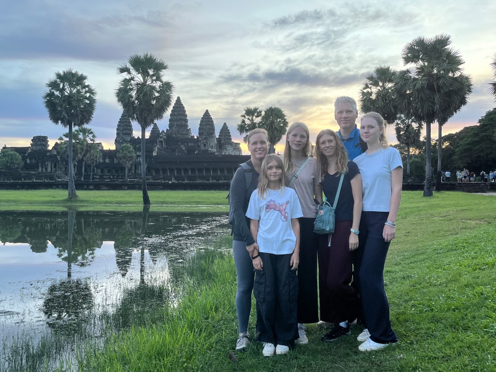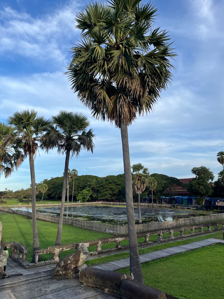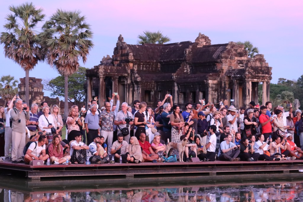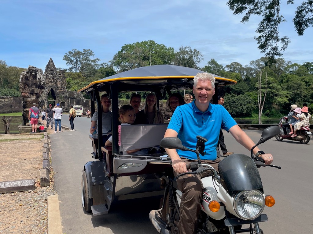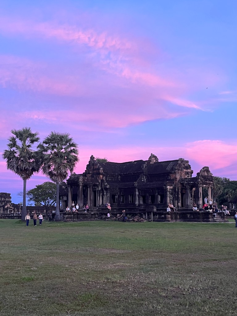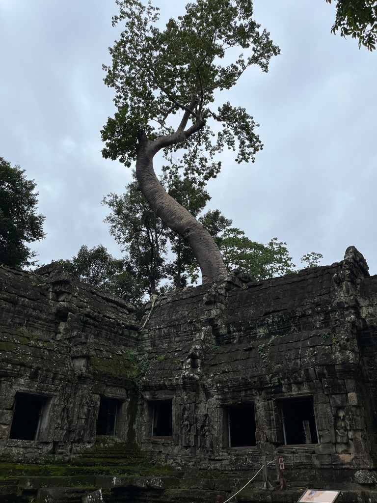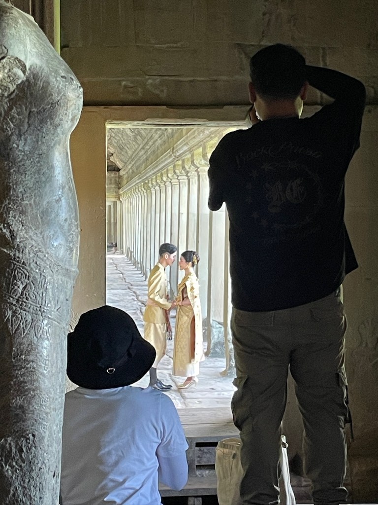 On Thursday morning, a guide came to our hotel for a 5am pick-up to head out to watch the stunning sunrise at Angkor Wat. It was crowded but well worth it! We don’t see many sunrises (more of a sunset family) but this one was one we couldn’t miss. We drove through the dark in two tuk tuks, followed the crowds over the bridge and towards the viewing platform where we stood and were mesmerised by the kaleidoscope of colors. A “pinch me” moment!