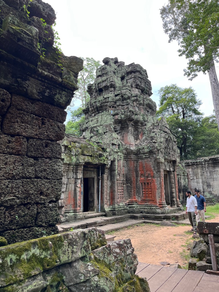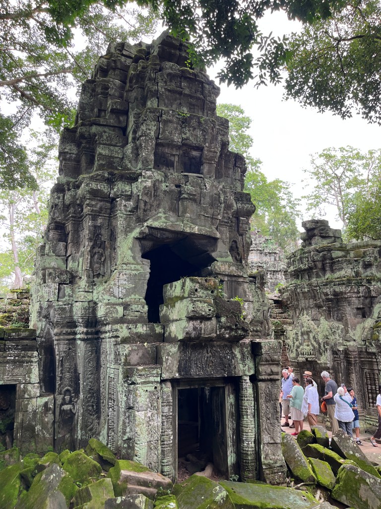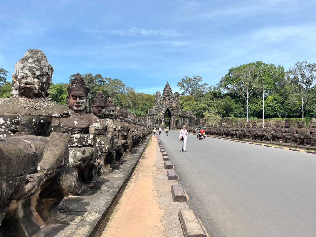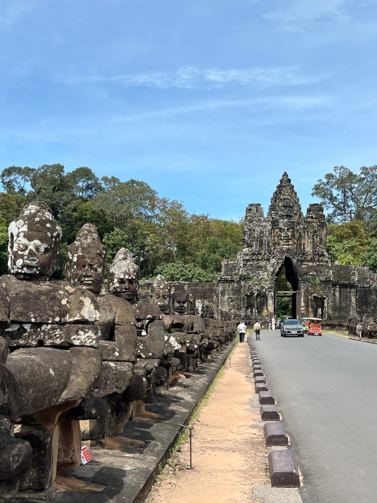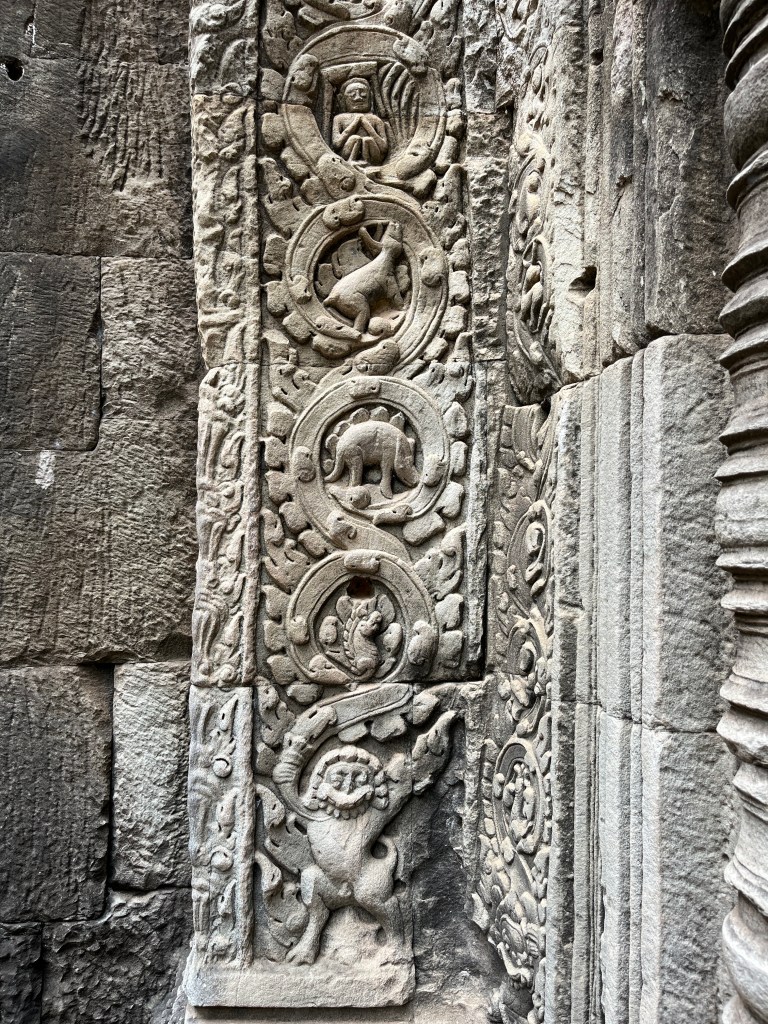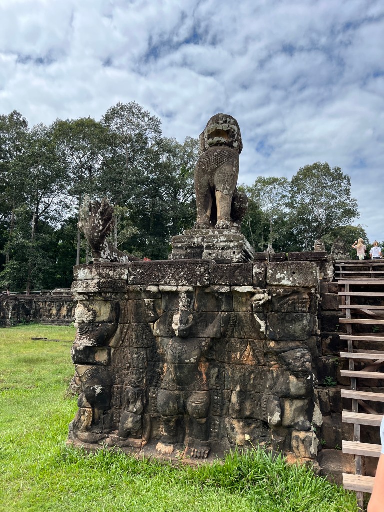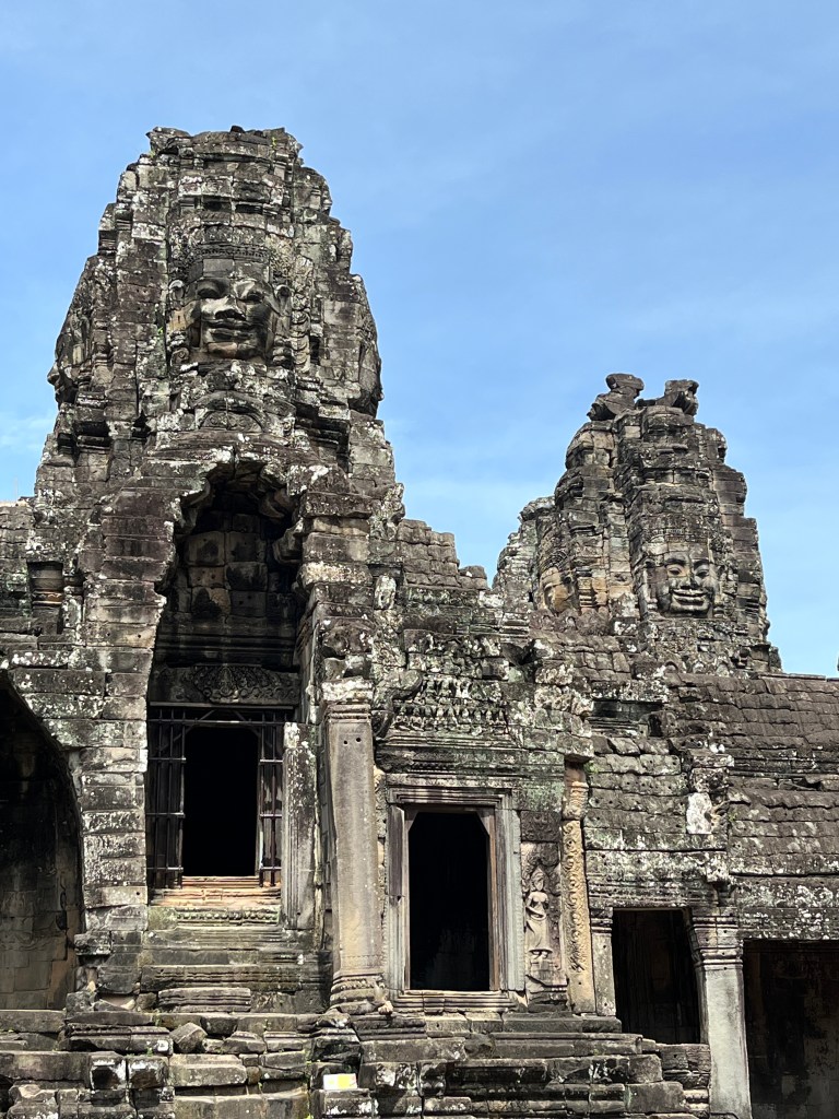 Our final stop was to the Bayon, known for the smiling stone faces of Brahma. We walked along the Terrace of Elephants to the temple. We saw a lot of mischievous monkeys and enjoyed the views as we approached the temple. And then in the temple, we were so impressed with the huge face carvings and all the intricate details. It was an informative, interesting day where we learned so much about Cambodian history and got to appreciate these beautiful works of art. We are so grateful to our guide who patiently explained everything!