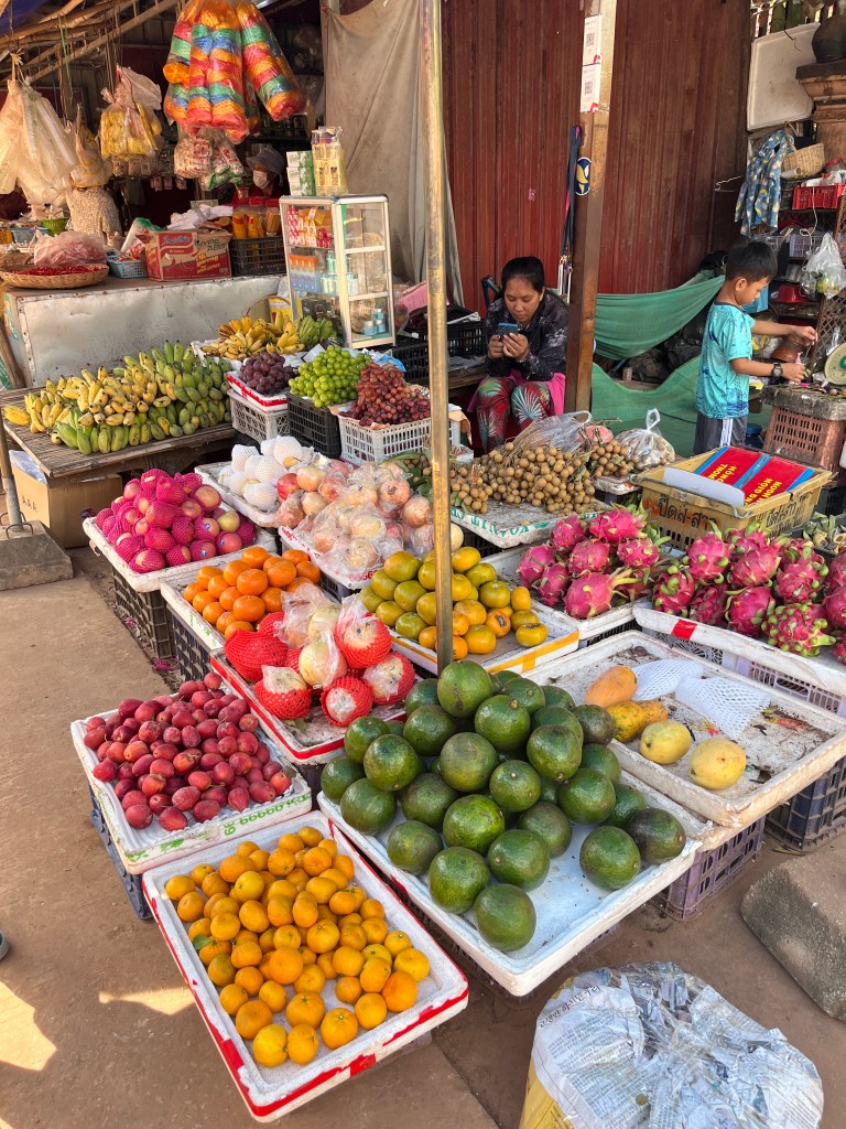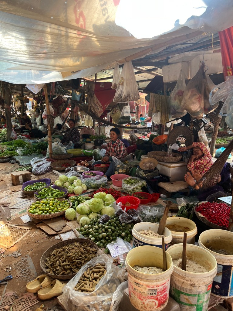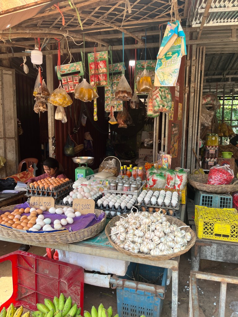 On Friday, we went on another interesting excursion with the same guide. This time we visited the floating village of Kampong Phluk. First we stopped at the Rolous Market which had everything from fruits to vegetables to a pig’s head to fish still swimming in the bucket. They also had clothing and packaged foods and fishing supplies. It went on and on and on! Our guide told us the market takes places everyday in the morning and then again in the afternoon. While it was overwhelming, I do think it was good for everyone to experience.