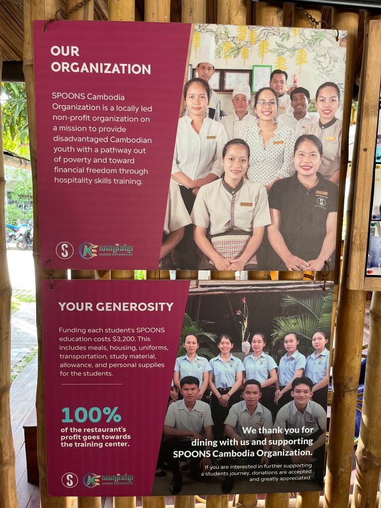 Speaking of, our guide pointed us in the direction of SPOONS, a restaurant with a good cause. They provide training and opportunities for underprivileged youth. Another worthy organization if you are looking to contribute to Cambodia’s development.