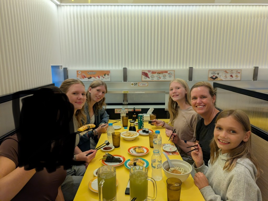 - Olivia: I really liked during the photo booth with our friend and just spending time with our friends in general. I also liked trying sushi for the first time and how safe and clean the city is.