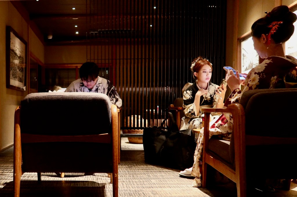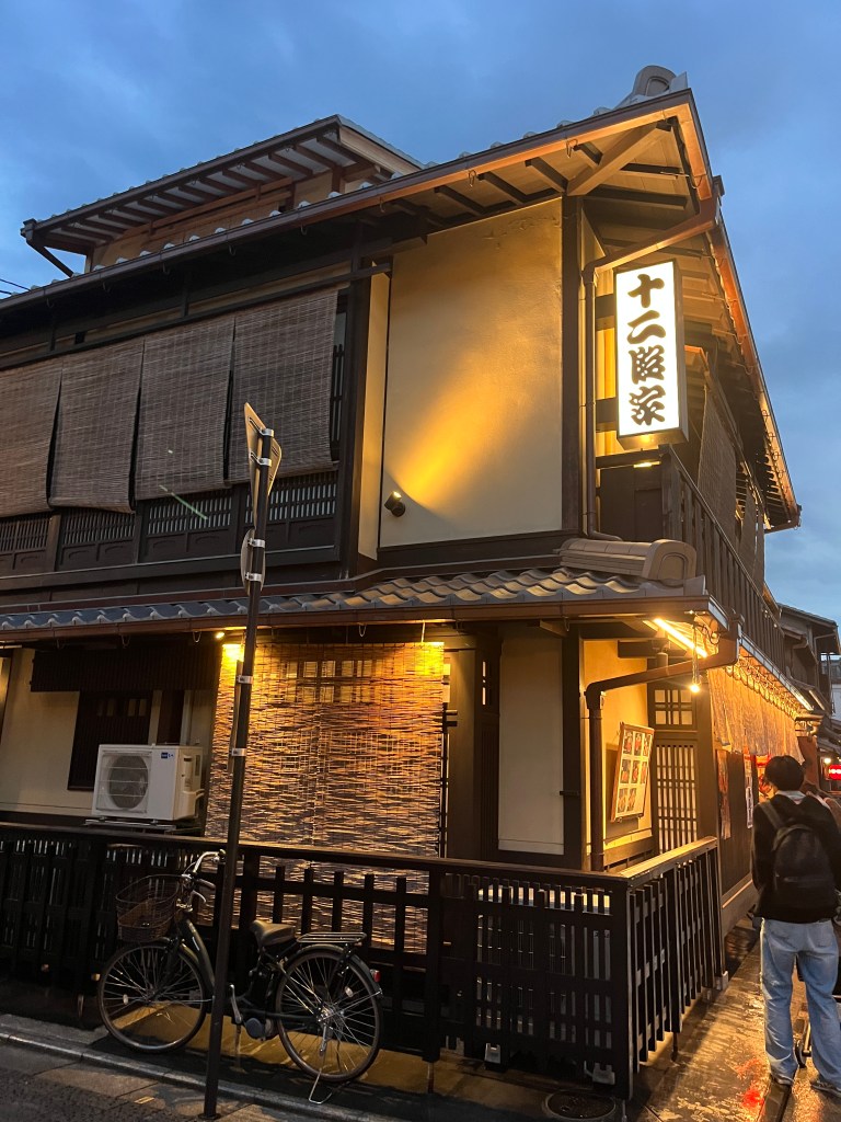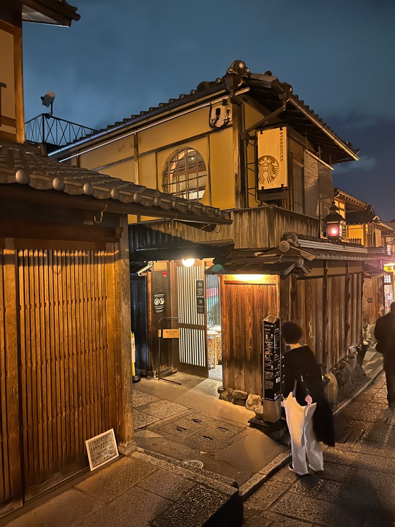 From there we walked to the Gion District, Kyoto’s geisha district, where we enjoyed the unique architecture and did some people watching, a favorite pastime. We stopped for some dinner at a hole-in-the-wall place where the chef so kindly made plain pasta for the girls. At the end we asked if she had ever made pasta without sauce and she said, “No, and I don’t understand why.” LOL We were very grateful for her willingness to do something so crazy for the foreigners. Afterwards we walked to the cutest Starbucks we’ve ever seen and enjoyed a warm drink, a sweet treat and a photo with a geisha. Then, on our train ride home, we experienced something that we believe is uniquely Japanese–a completely packed train (think, every seat occupied, every standing spot filled, no empty space) that was completely silent. Not a word said, not a sneeze or cough or sniffle heard. It was crazy!