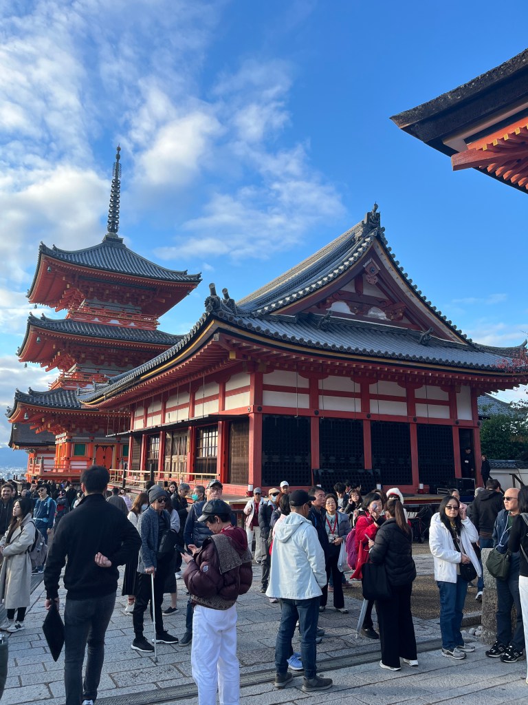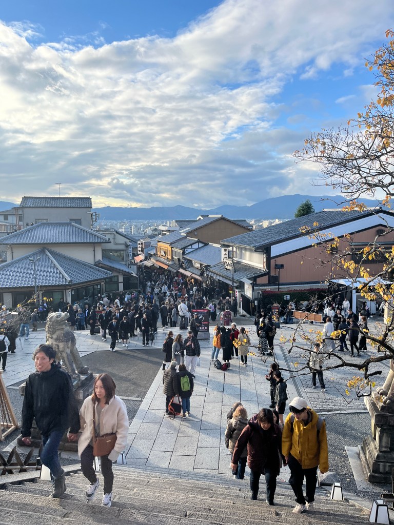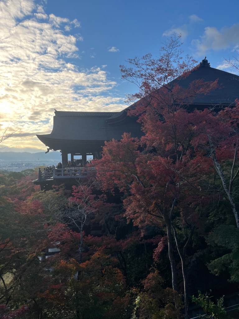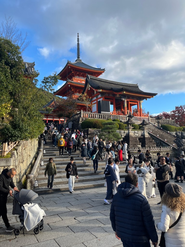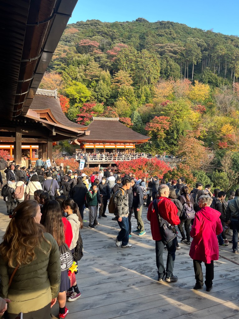 The next day we headed back into Kyoto, this time to see the Kiyomizu-dera Temple which turned out to be very, very crowded! A completely different experience to the temple we visited on Monday afternoon. But still really beautiful. And there were some amazing views of the city! It is a big complex so once we walked a little ways away from the main entrance, the crowds did thin out. And the natural light was gorgeous as it was late afternoon. The sun sets here around 5:00pm…