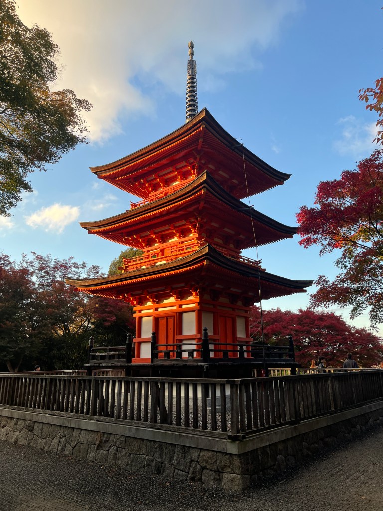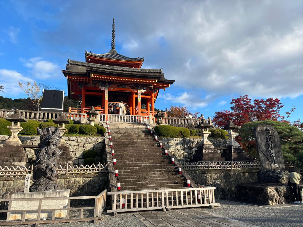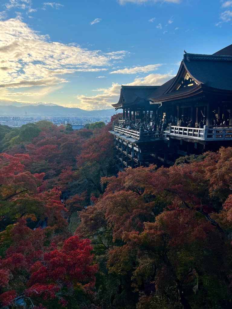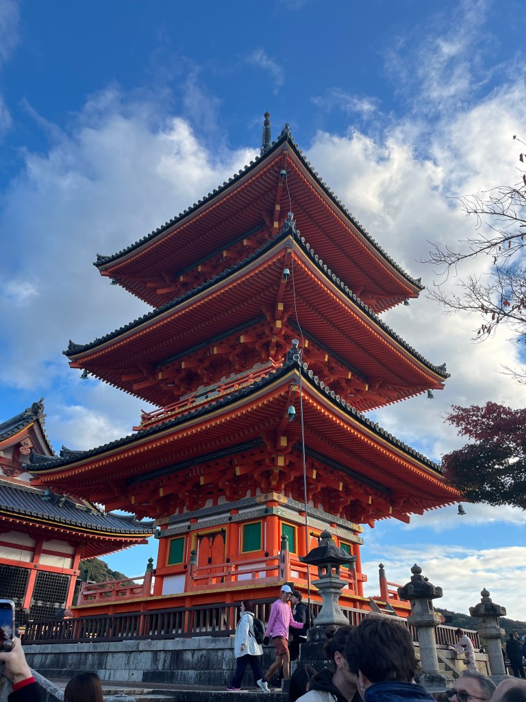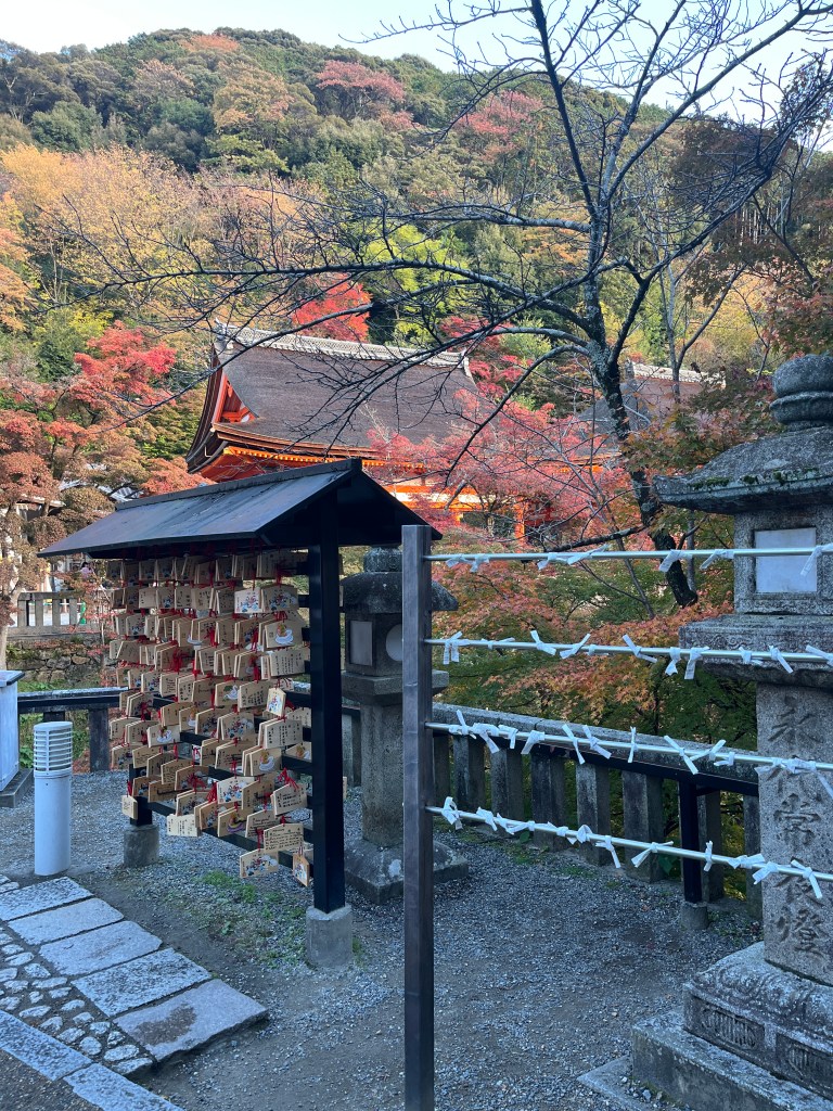 The next day we headed back into Kyoto, this time to see the Kiyomizu-dera Temple which turned out to be very, very crowded! A completely different experience to the temple we visited on Monday afternoon. But still really beautiful. And there were some amazing views of the city! It is a big complex so once we walked a little ways away from the main entrance, the crowds did thin out. And the natural light was gorgeous as it was late afternoon. The sun sets here around 5:00pm…