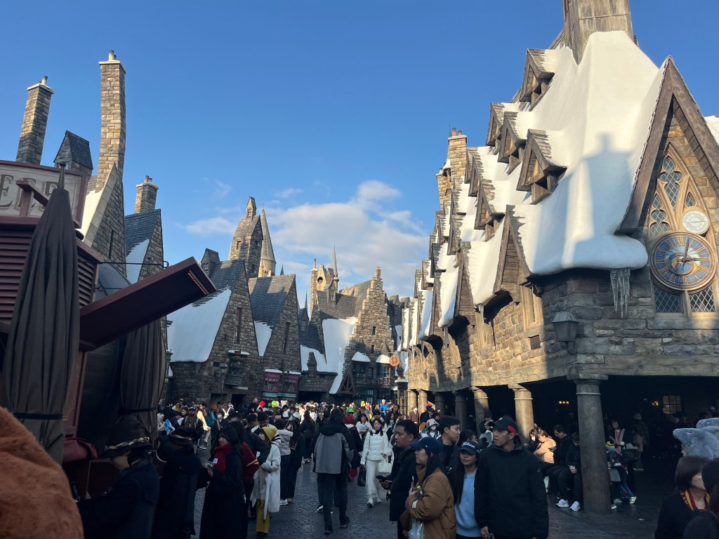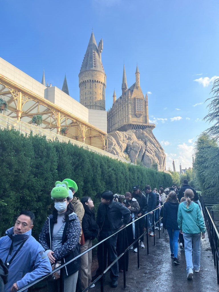 The next day was a day the kids had been looking forward to since we were in Thailand–a trip to Universal Studios Japan! We met a German family in Koh Lanta that told us that a trip to Universal Studios was well worth it, so we offered it to the girls as an early Christmas present. Unfortunately it was a rainy day (the first rainy day we’ve had since that day in Ninh Binh, Vietnam) but we made the best of it. We went on a few rides, did some window shopping, watched a holiday singing show, ate at the Three Broomsticks and explored Hogsmeade and Hogwarts (Harry Potter fans know). The girls were very patient during the endless lines, keeping themselves occupied with various games. We left at closing, tired, cold, a little wet and very happy!