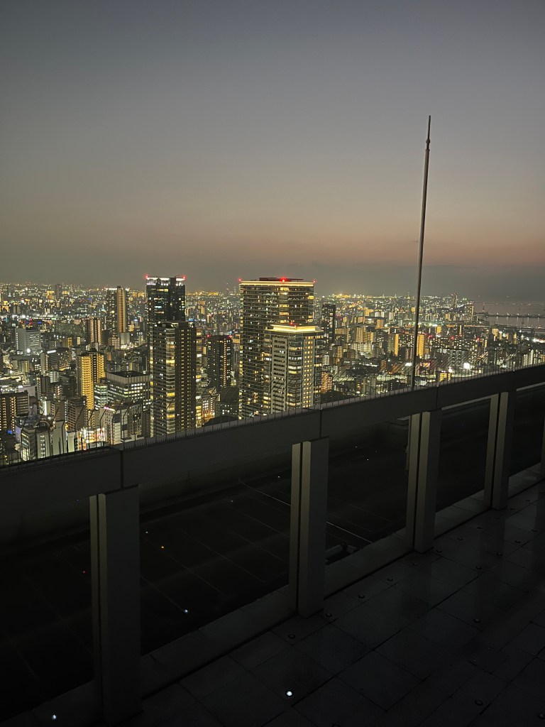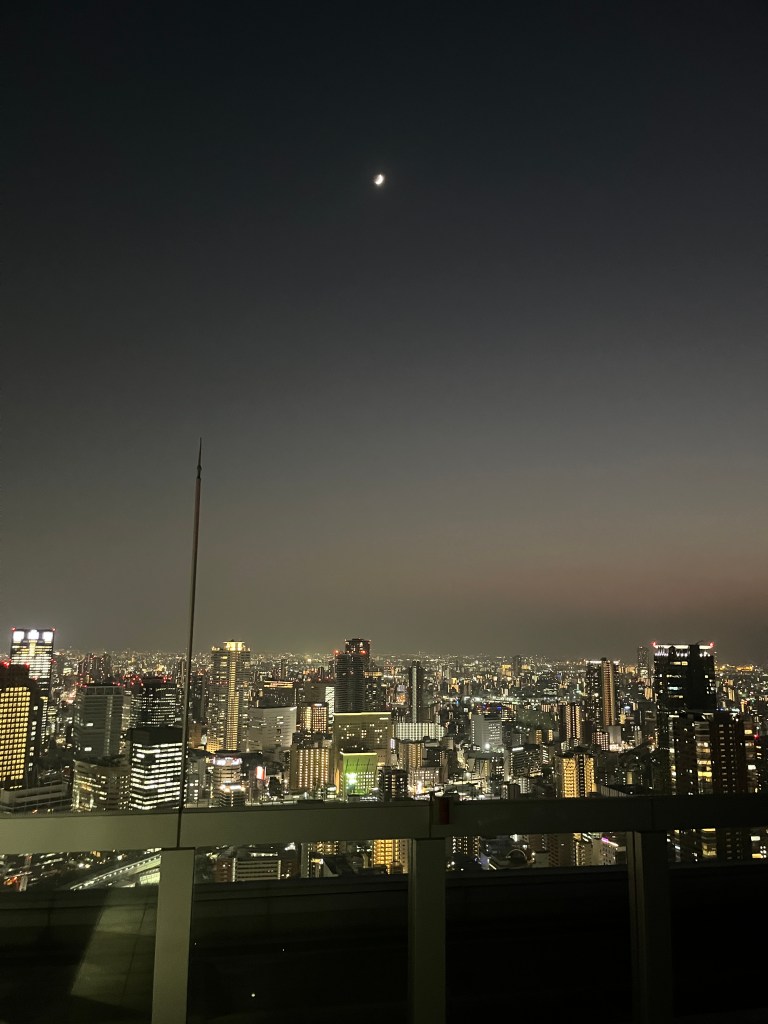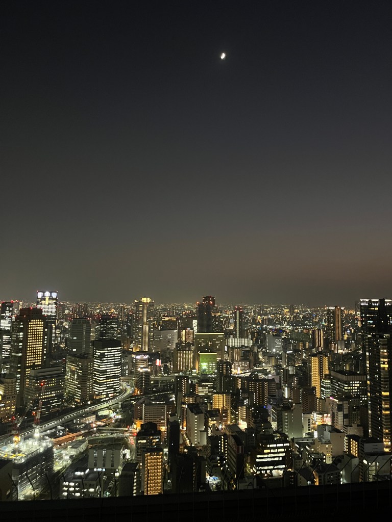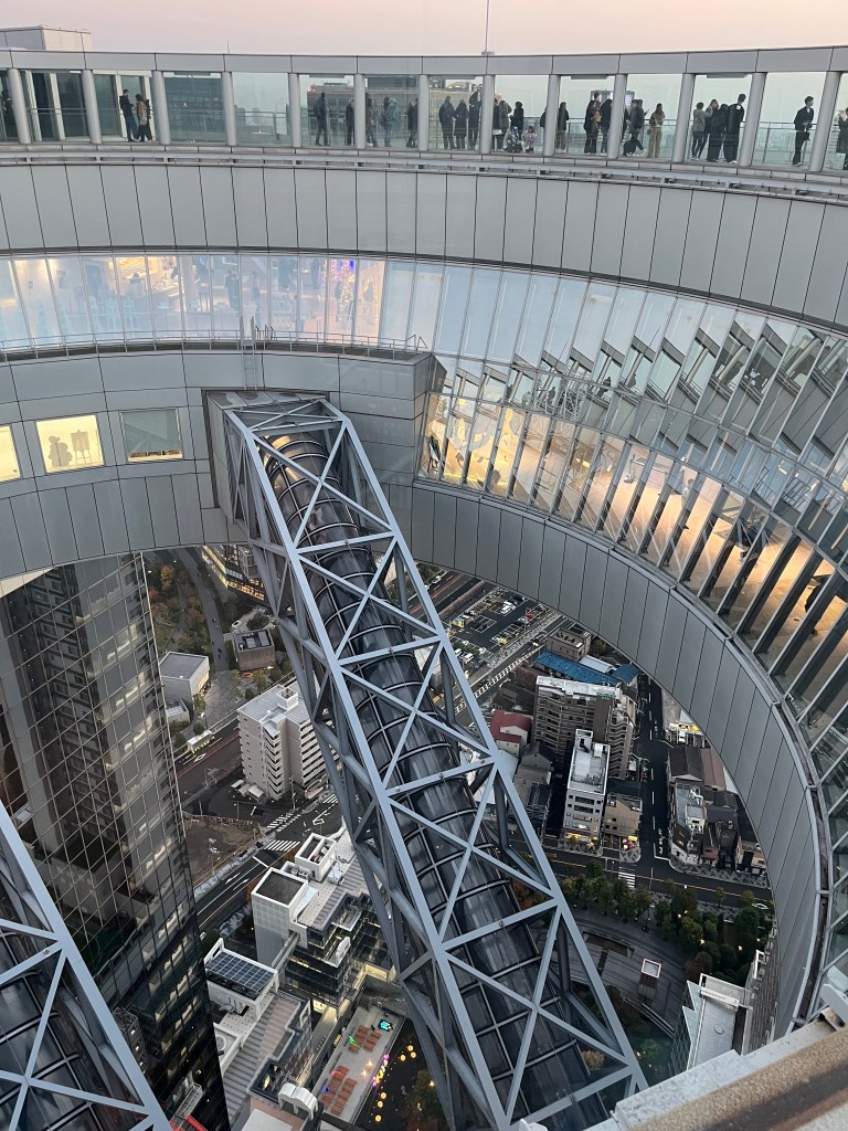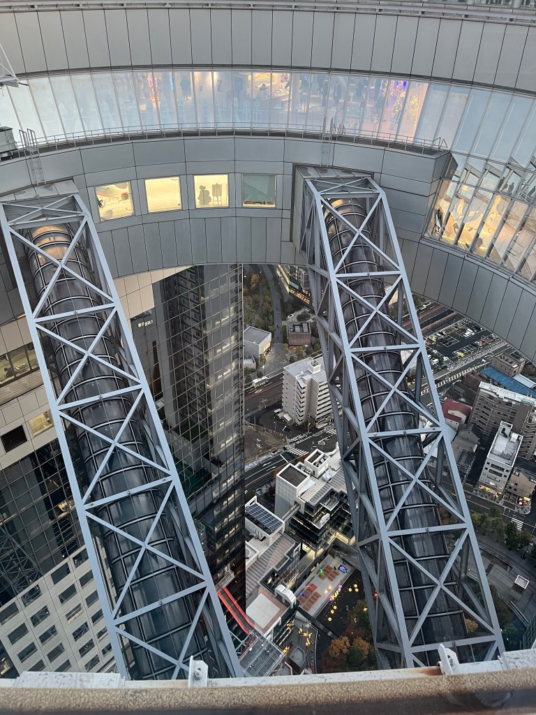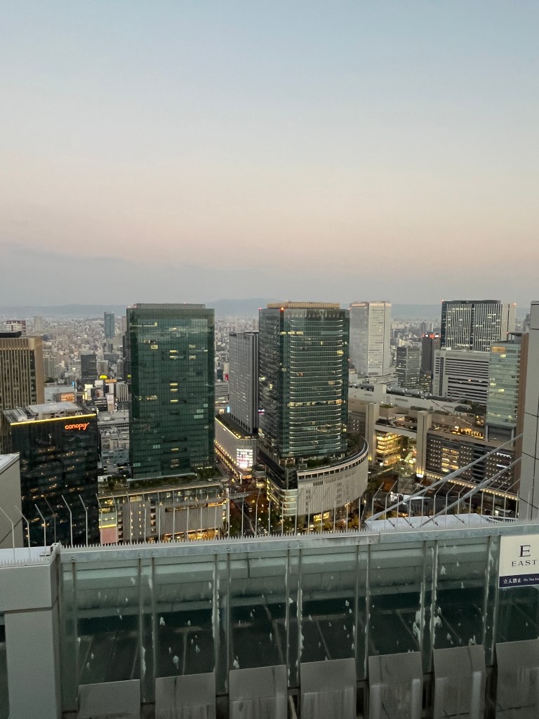 Wednesday was our final full day in Osaka, and we took it a bit slow. We woke up late, did some schoolwork and then ventured out. I really wanted to go to the top of the Umeda Sky Building, so Hannah, Charlotte and I headed out as the others finished up school. We made it to the top as the sun was setting and stayed to enjoy the beautiful city lights. The building was very cool, especially these escalators that appear to float in the air. A little freaky to ride! But also neat. The views were incredible.