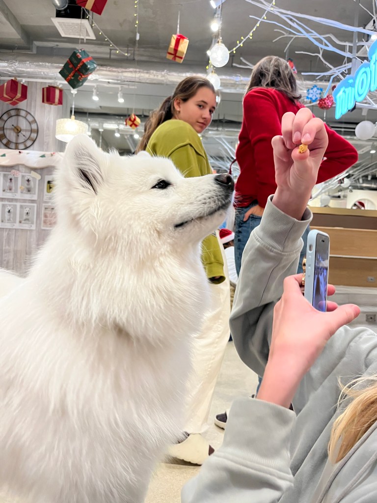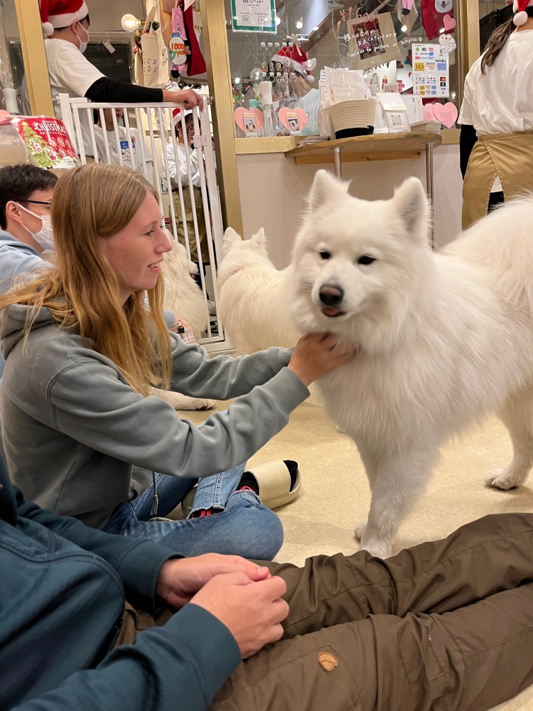 We had an appointment at 5:00pm to snuggle some Samoyed doggies and wanted to explore the area, so headed over via bus and train. The public transportation in Tokyo is clean, efficient, easy to navigate and always in-time. We also did some window shopping (very difficult to not succumb to buying!) and had dinner.