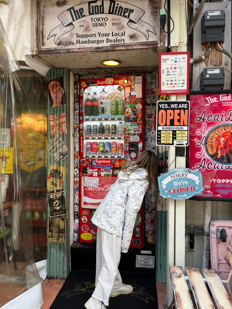 We had an afternoon flight so we had a some tie to kill before heading to the airport. I had heard about this diner that is behind a vending machine, and we thought maybe we could grab a treat. But it didn’t open until noon which was too late. We walked around that area a bit and marvelled at how different it was from all the other areas we had seen. Like I’ve said, we could easily have spent a month exploring Tokyo! Then we had one last meal at Luisa’s favorite restaurant. We had eaten there the first night, and she loved their pasta pomodoro, she begged us to go once more. So our first meal and our last meal in Tokyo were at the same Italian restaurant. There are compromises that must be made when traveling with children! LOL
