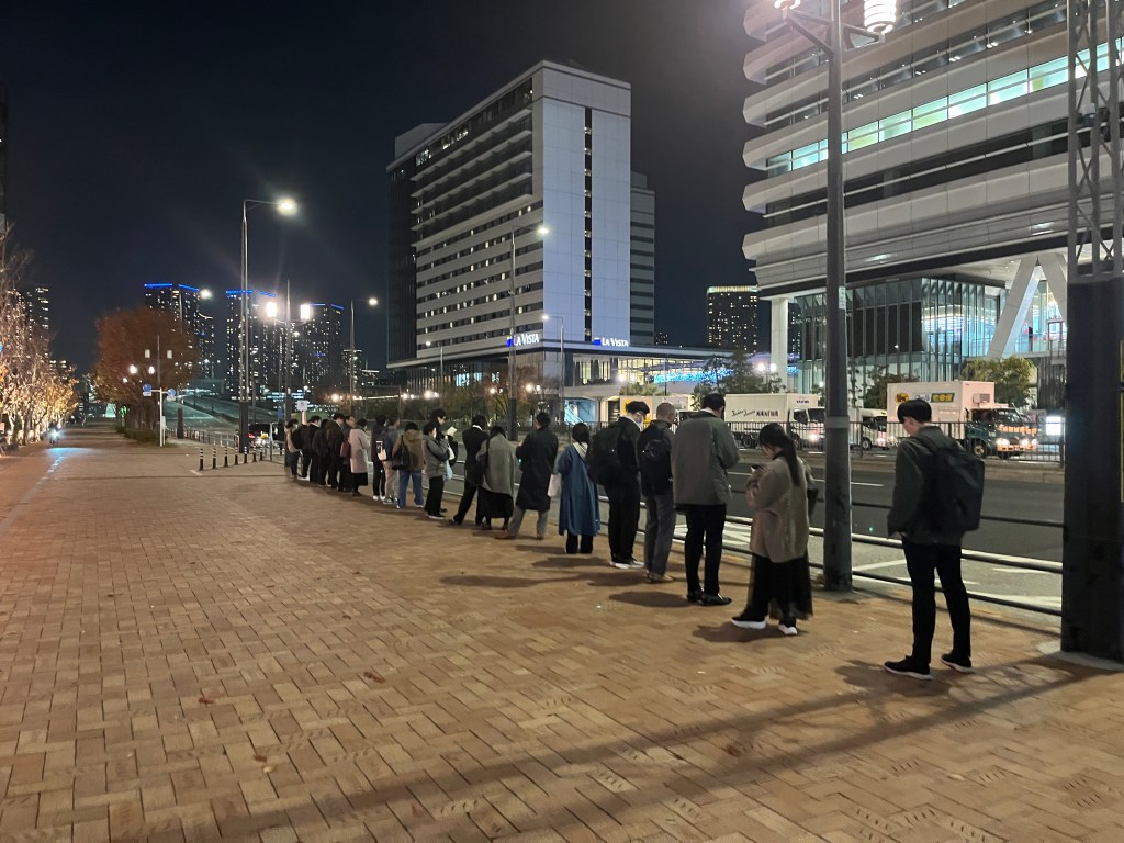 They take lining up seriously and we often saw lines like this for the bus. Quiet, calm and very orderly.