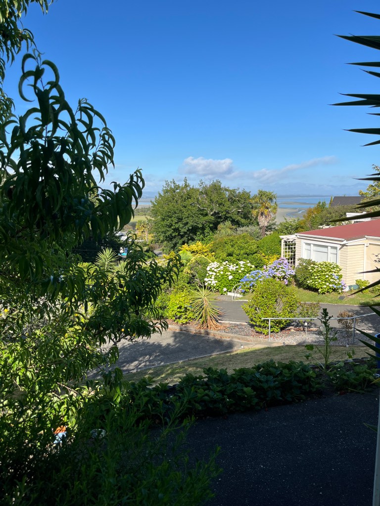 Our journey from leaving the hotel in Japan to arriving at the rental house in New Zealand took over 26 hours and included two flights, an almost 4 hour layover in the middle of the night in Fiji, running through Tokyo trying to catch buses and trains and a long drive through rural New Zealand! But we got some good views along the way and were so so so happy to arrive at the house and see this view from the living room.