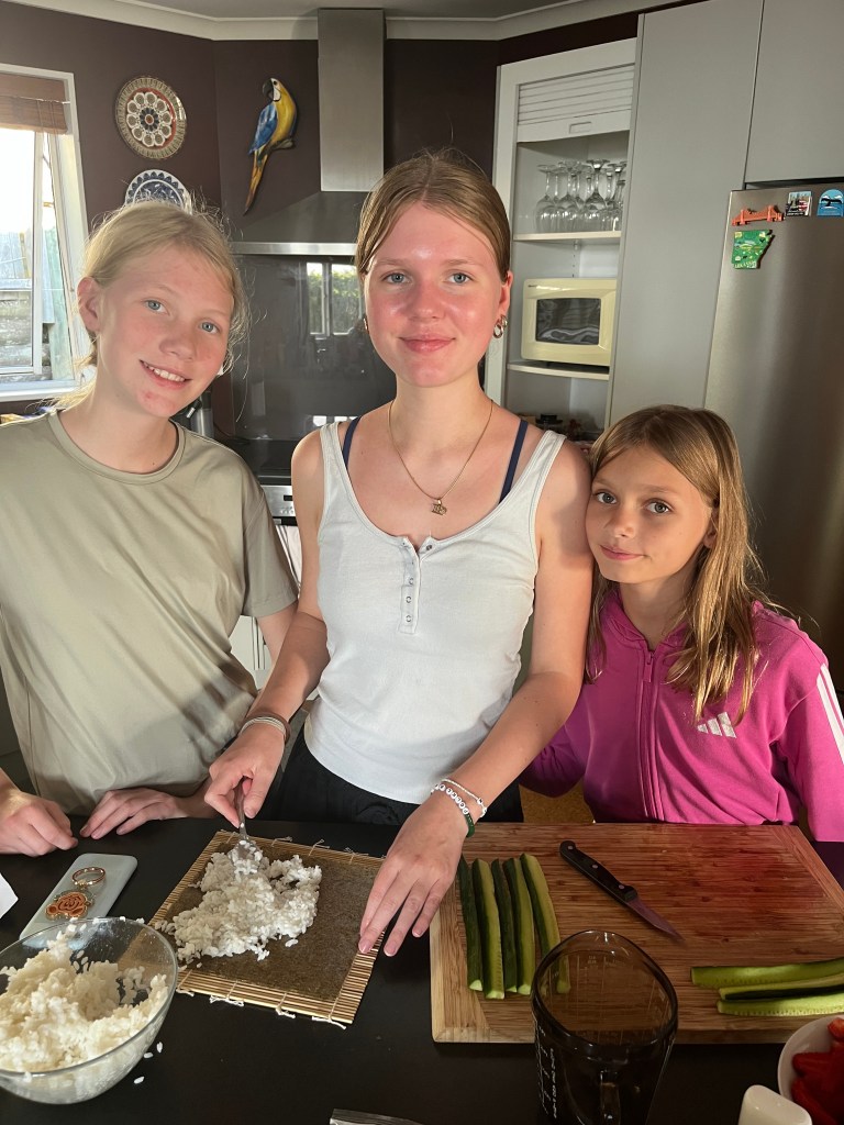 That afternoon, we drove to Nelson Lakes National Park for a swim and short hike. Only Hannah was brave enough to fully swim, but everyone had fun. We then came home, and Charlotte, Olivia and Luisa made sushi for dinner! What a treat.