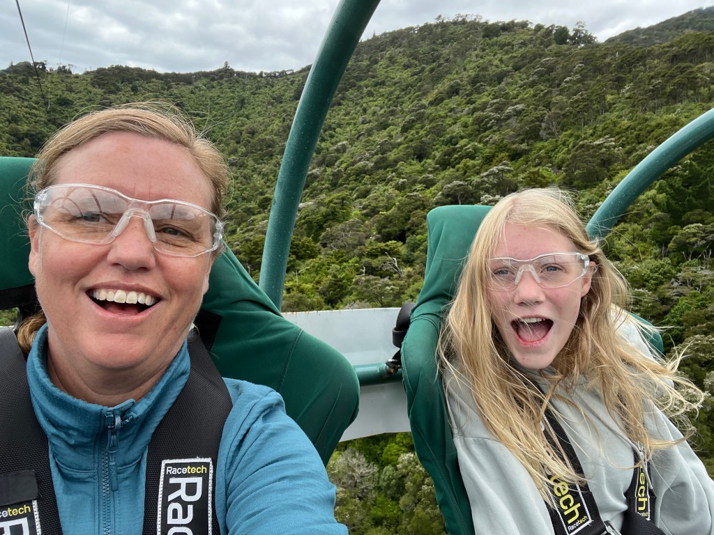 One morning we headed over to Cable Bay Adventure to try out their Skywire, “a scenic ride with a shot of adrenaline flying high above the forest canopy”. It was a very fun experience in a beautiful location! It was very cool to see the old growth forest from above. There was also a small petting zoo, and Luisa had fun taking photos of the animals!