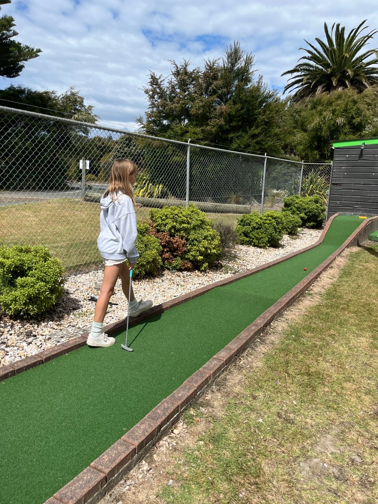 We had wanted to go mini-golfing together one afternoon but the rain had other plans, so we pivoted and went back to the little movie theater in town. We watched Zootopia 2 and enjoyed some laughs together. I really loved having a movie theater so close by! Then another afternoon, Steffen, Charlotte and Olivia went mountain biking, so Hannah, Luisa and I checked out the mini-golf course in town. It was a fun little course, and then we walked along the beach and played on the playground for a bit.
