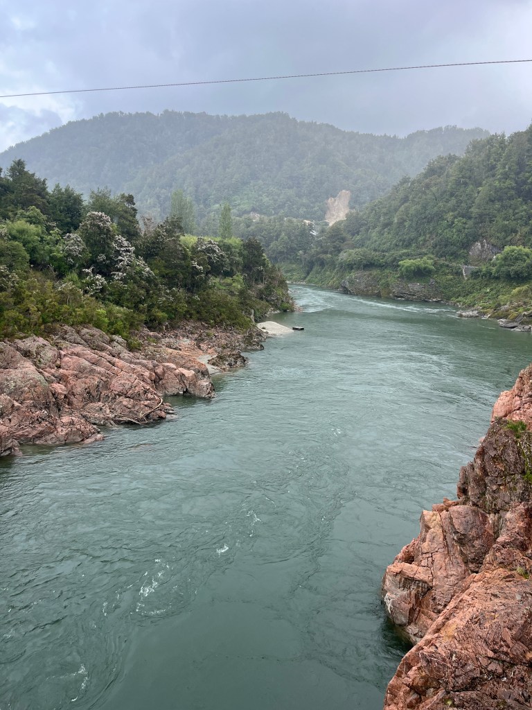 On our way out of Nelson, as we made our way to our next destination, we stopped at Buller Gorge Swing Bridge. It was rainy, so we didn’t spend very much time there but it was beautiful and interesting. In 1929 there was a major earthquake there and you could see where the earth had shifted. Fascinating! It was a great stop along the way to move our bodies, get a little fresh air and learn a bit about the region.