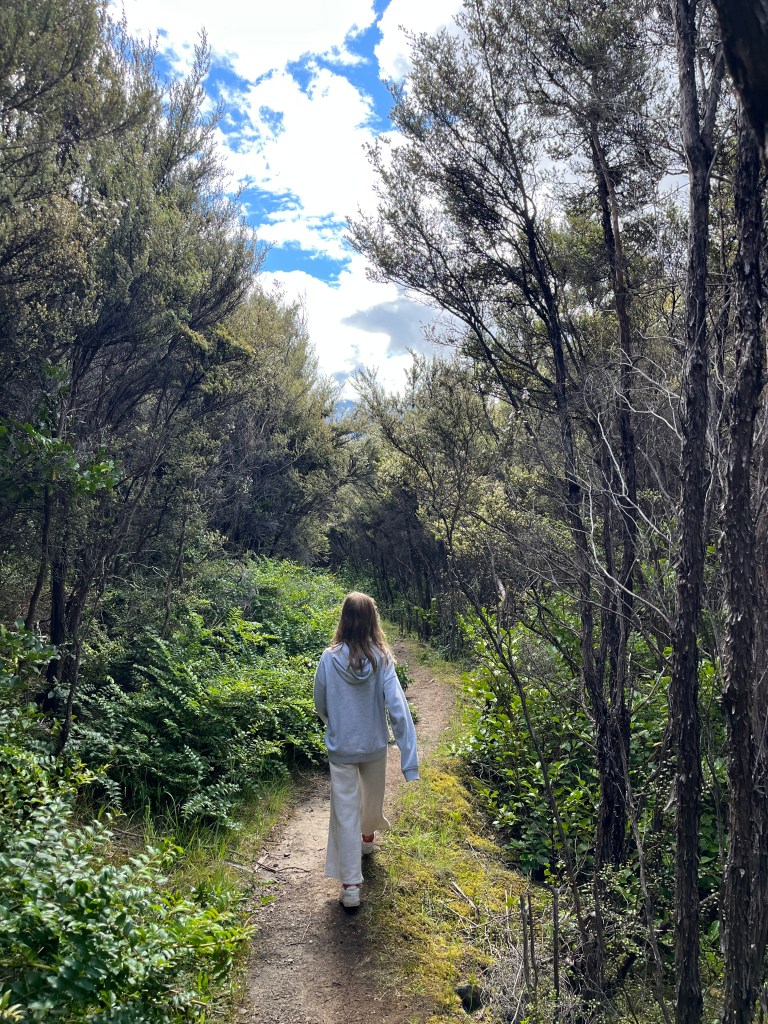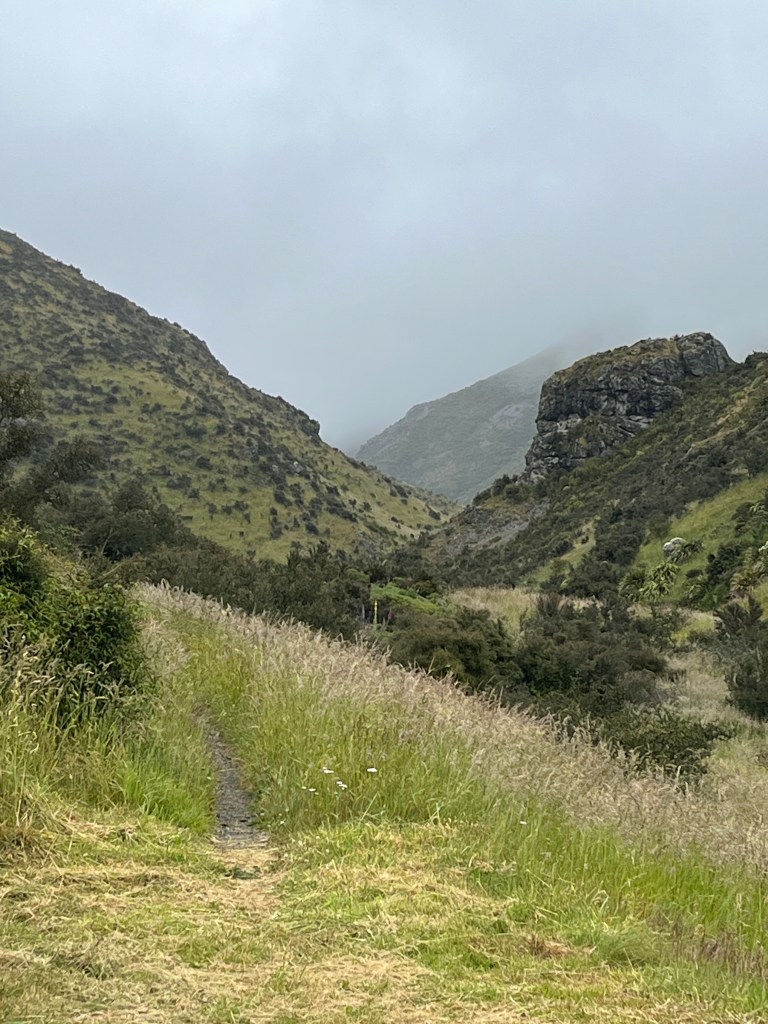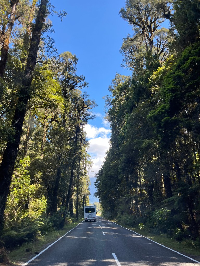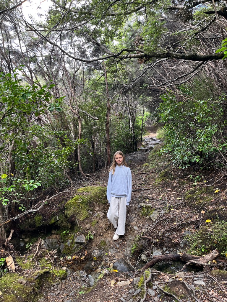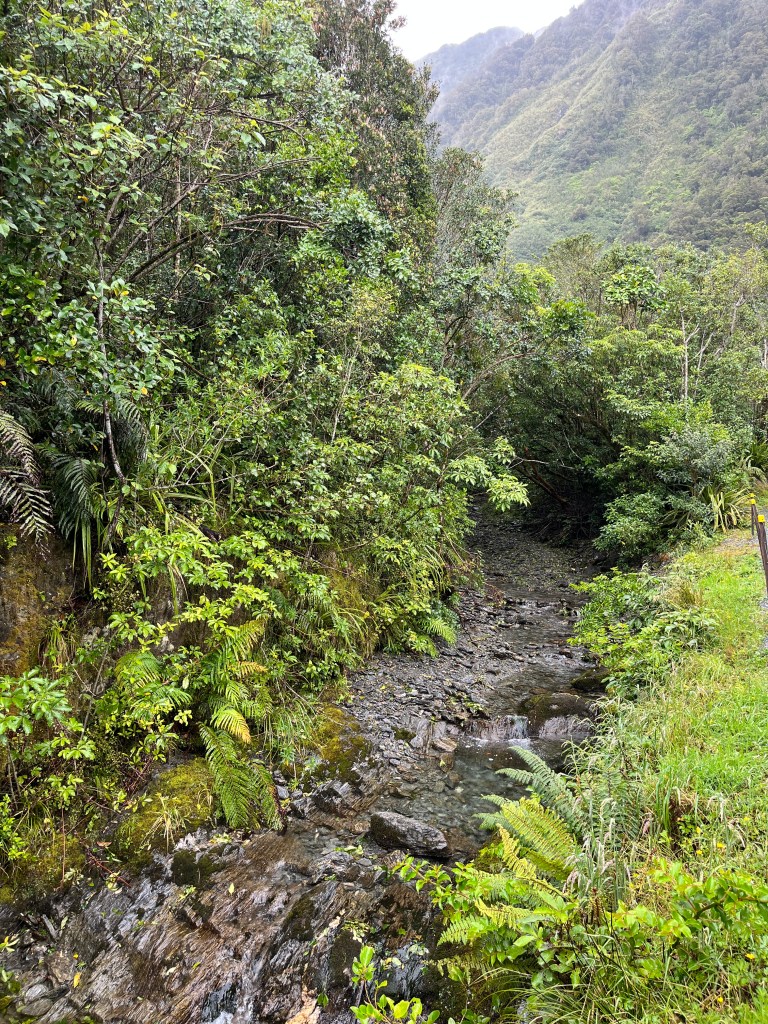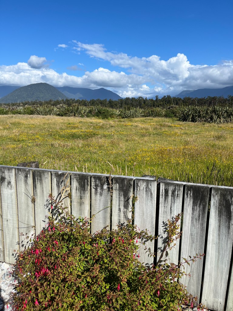 From there we drove about 20 minutes to the village of Fox Glacier where we dried off and had some lunch. I was hoping we would then take the hike to the viewpoint closest to the glacier but the family rebelled. So we drove to another viewpoint that the woman at the visitor centre had recommended, and we actually got a petty good view. It was very far away but the clouds lifted and you could spot it. Which made me happy. (It look like a giant waterfall where the two mountains form a V, way in the distance.) We spent some time relaxing there and went on a little walk through a nearby forest and listened to all the different birds.