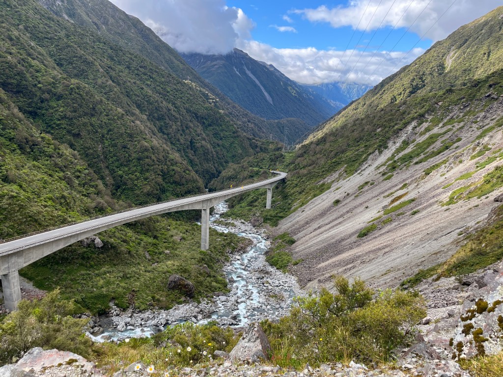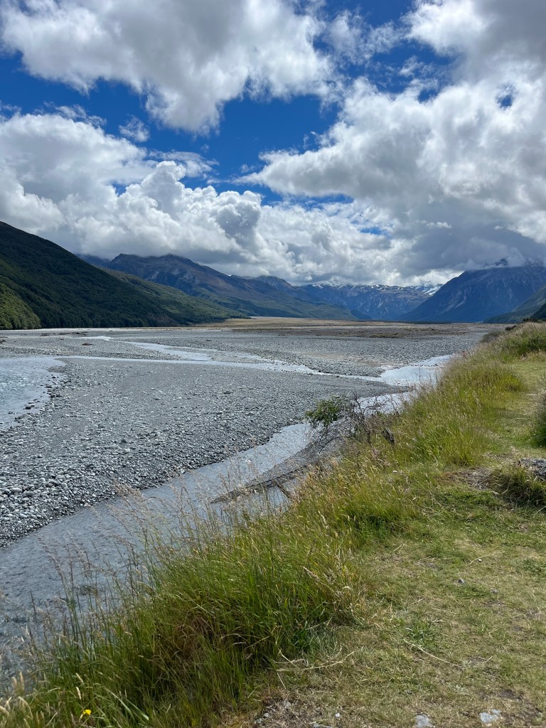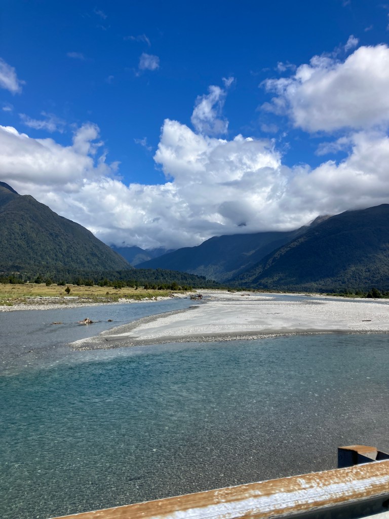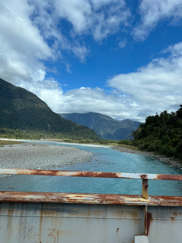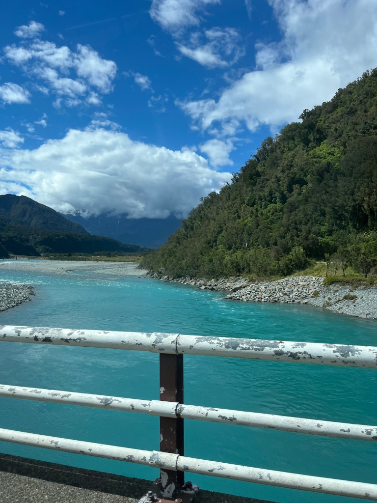 Arthur’s Pass National Park was about halfway between the farm and Hokitika. We stopped there for a 4km walk through the forest with waterfalls, lush forest and views of the mountains and river of turquoise water. It was a great way to break up the drive!