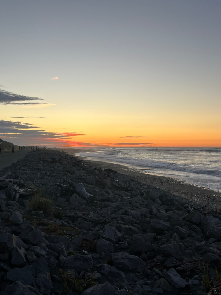 From there we drove the rest of the way to Hokitika, enjoying some amazing landscapes along the way. We loved our little motel in Hokitika but were not very impressed with the town. There isn’t much happening there! But there is a beautiful beach where we caught a pretty sunset after a very long wait for dinner.