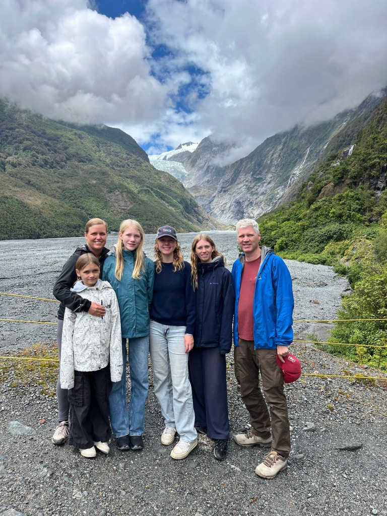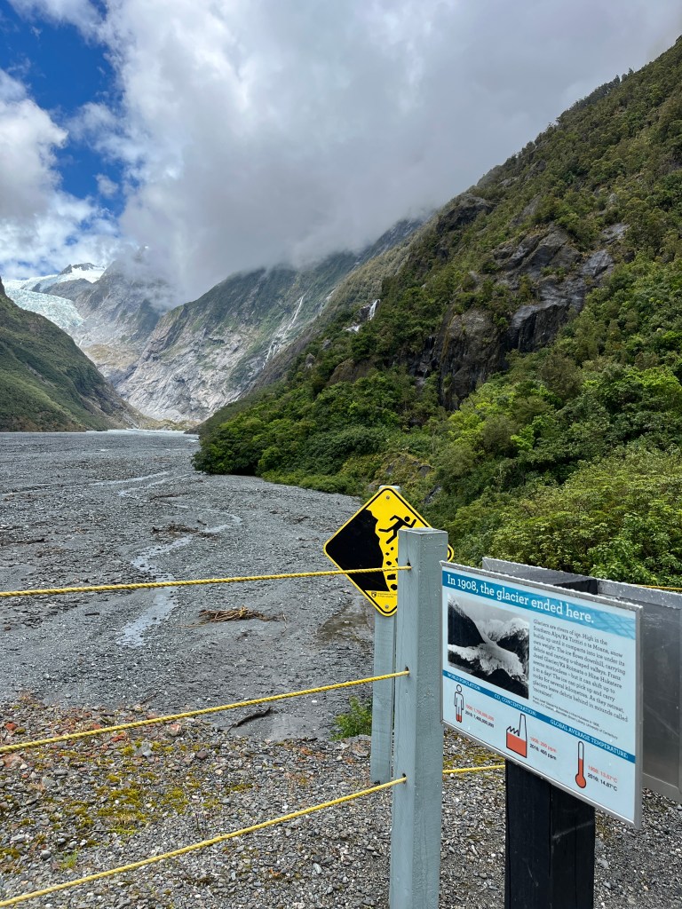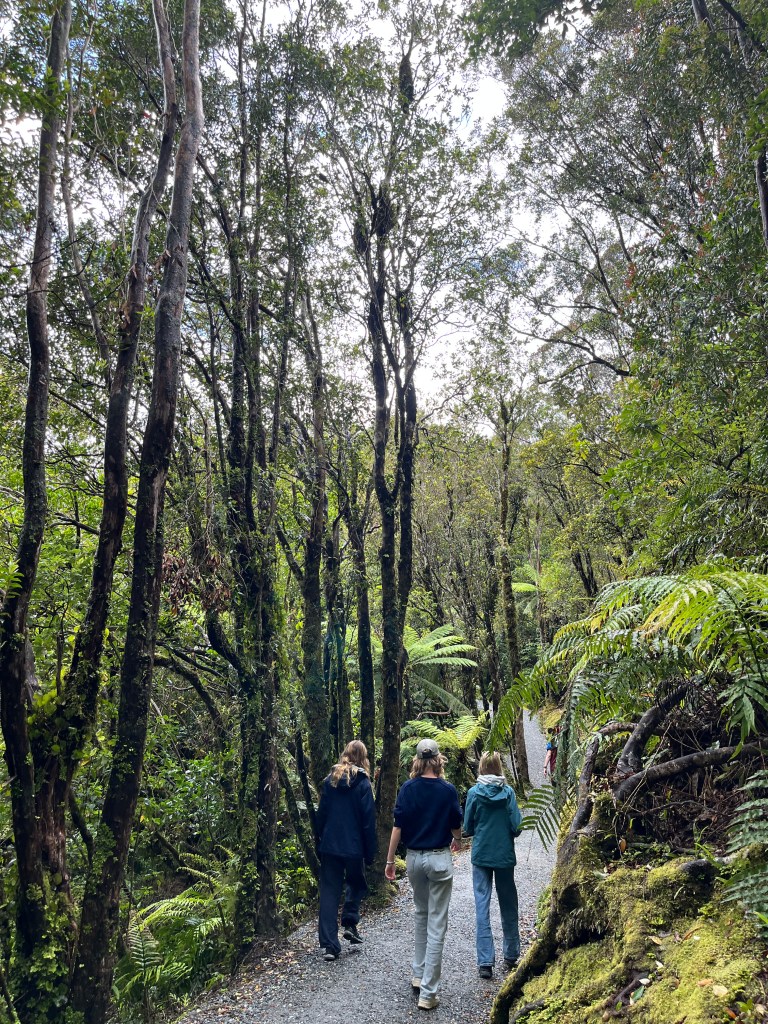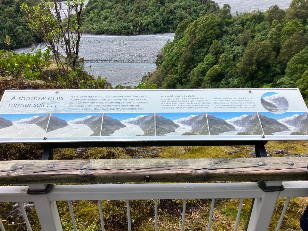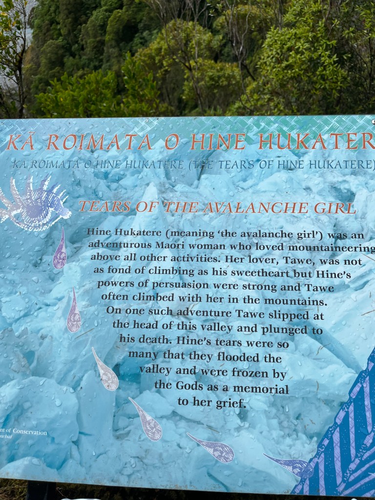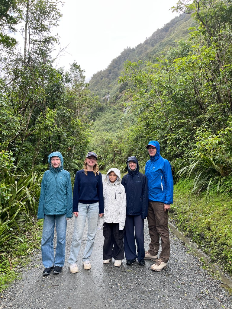 First we drove to the parking lot for the Franz Josef Glacier and walked maybe 15 minutes to the viewing point. We got very lucky and the clouds had parted, so we were able to view the glacier. But it is so sad to see how small to has gotten and at a much quicker rate than scientists had anticipated every 15 years ago. If you zoom in on the photo with the progression photos below, you can see that they estimated that in 2100 the glacier would be the size it actually is today (plaque was made in 2010). It is scary and prompted a lot of important discussions with the girls. As we returned from the second viewpoint (where we couldn’t actually see the glacier because the clouds had come in), it started pouring. They aren’t kidding about it being a rainforest! We were soaked!