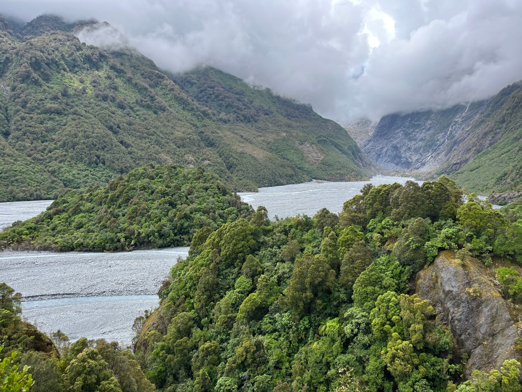The next morning, Steffen and I got up early and headed to the grocery store to grab some food for the next few days. Our accommodation in Haast has a kitchen and had warned us that there was only a couple of restaurants and a small convenience store in the village, so we should stock up before arriving. Then we headed out on the road with the hopes of seeing both the Franz Josef Glacier and the Fox Glacier, which are unique because they descend into temperate rainforests. We arrived at Franz Josef village a little before noon and a woman in the visitor centre gave us some tips on where to go for both glaciers which was very helpful.