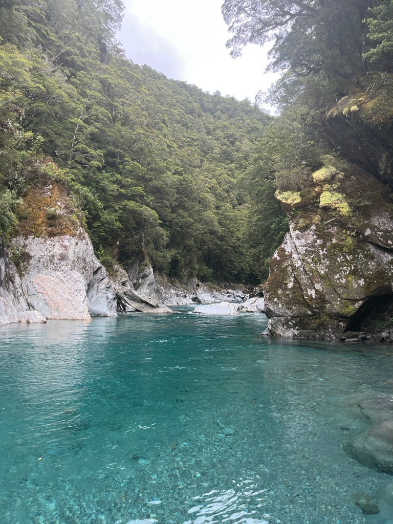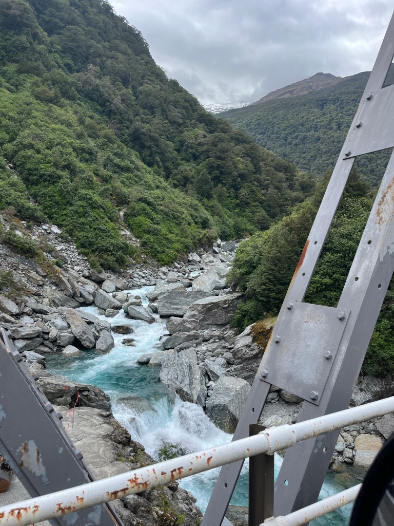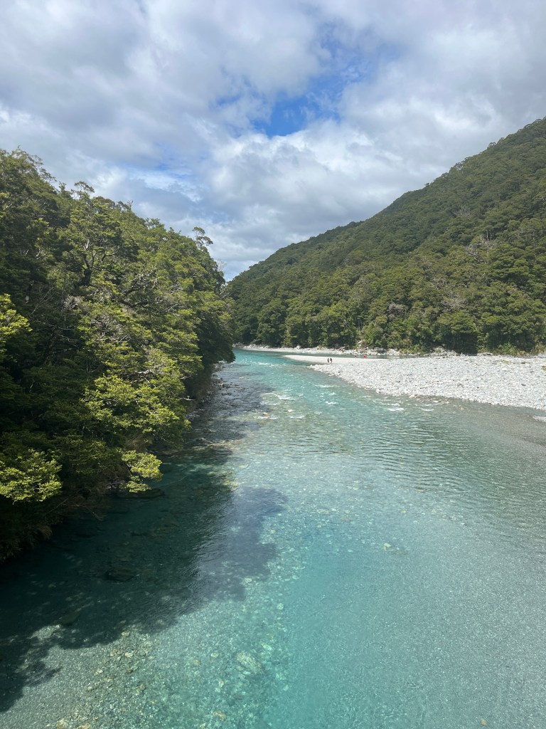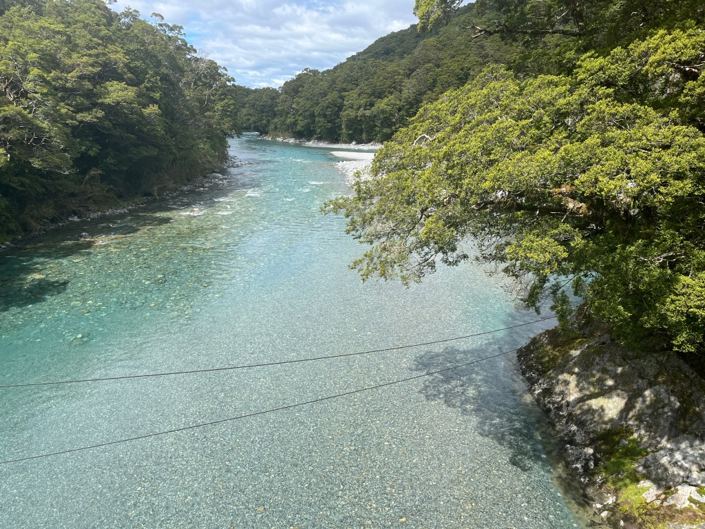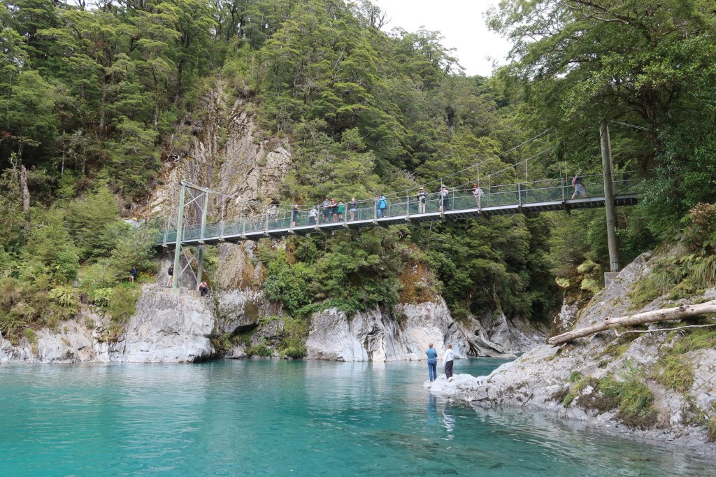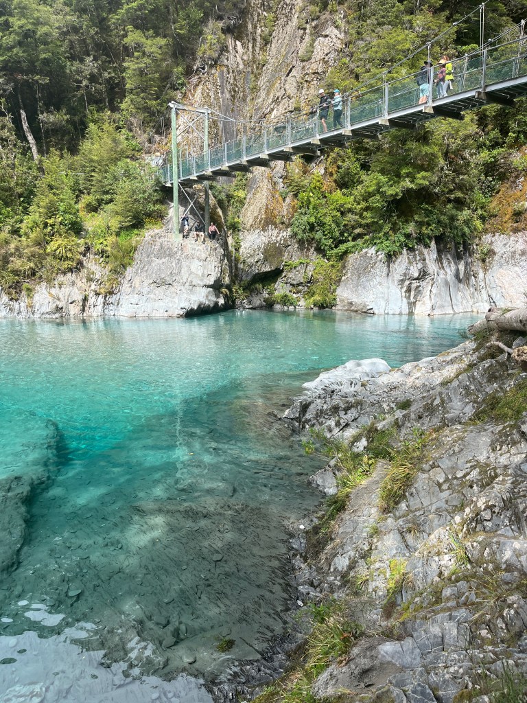 We drove about an hour to our first stop, Blue Pools in Mount Aspiring National Park, which is very aptly named. It was an easy and beautiful walk from the parking lot to the pools where we admired the unreal colour and watched some very impressive rock-skippers.