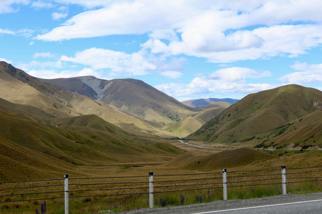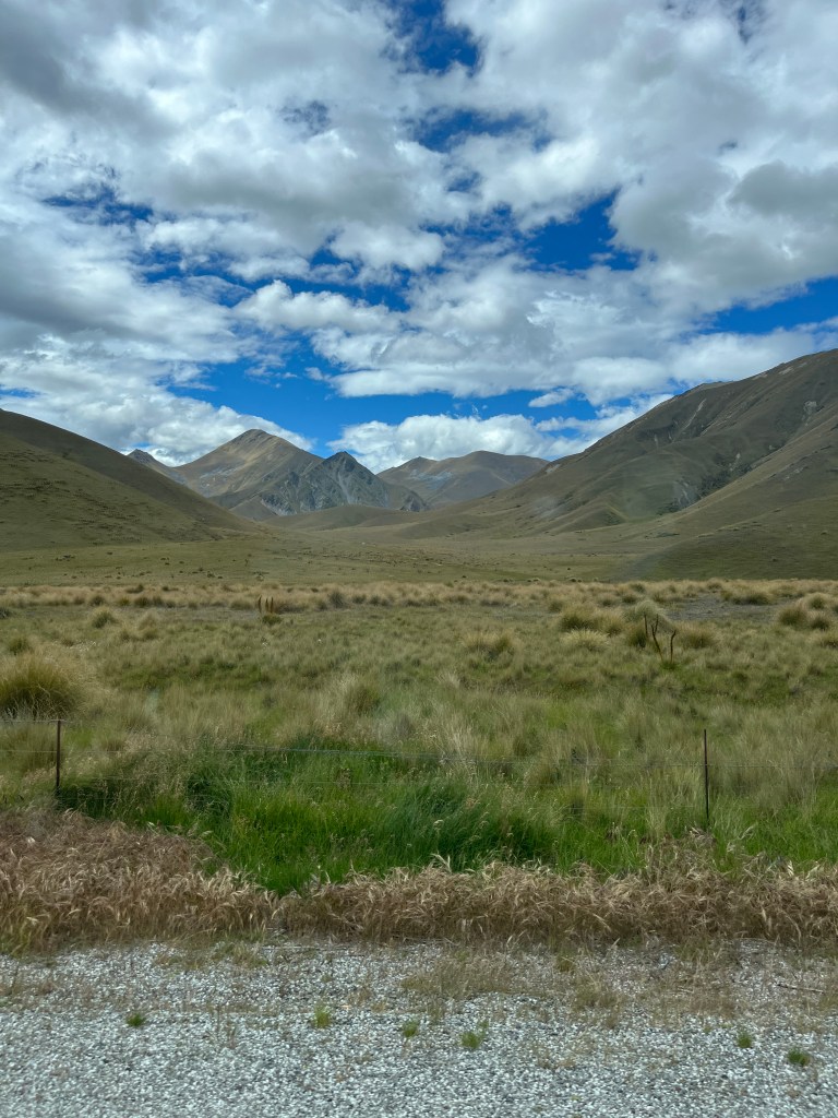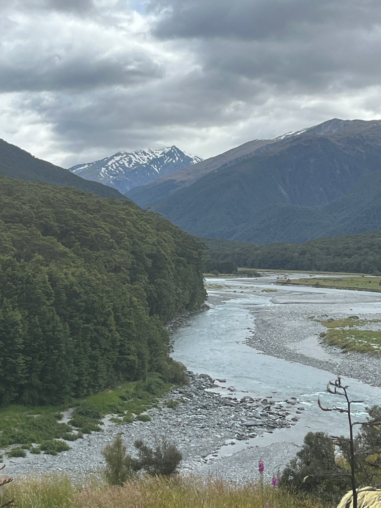 We left Haast early Wednesday, January 7th and headed east for one of the most beautiful drives we’ve been on. I think the most amazing part was the diversity of the nature–we started in the lush rain forest, passed by several turquoise lakes, came across the arid hills of Otago and ended with a visit to Clay Cliffs, a dramatic geological formation. Brace yourself for many photos!