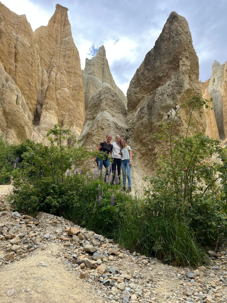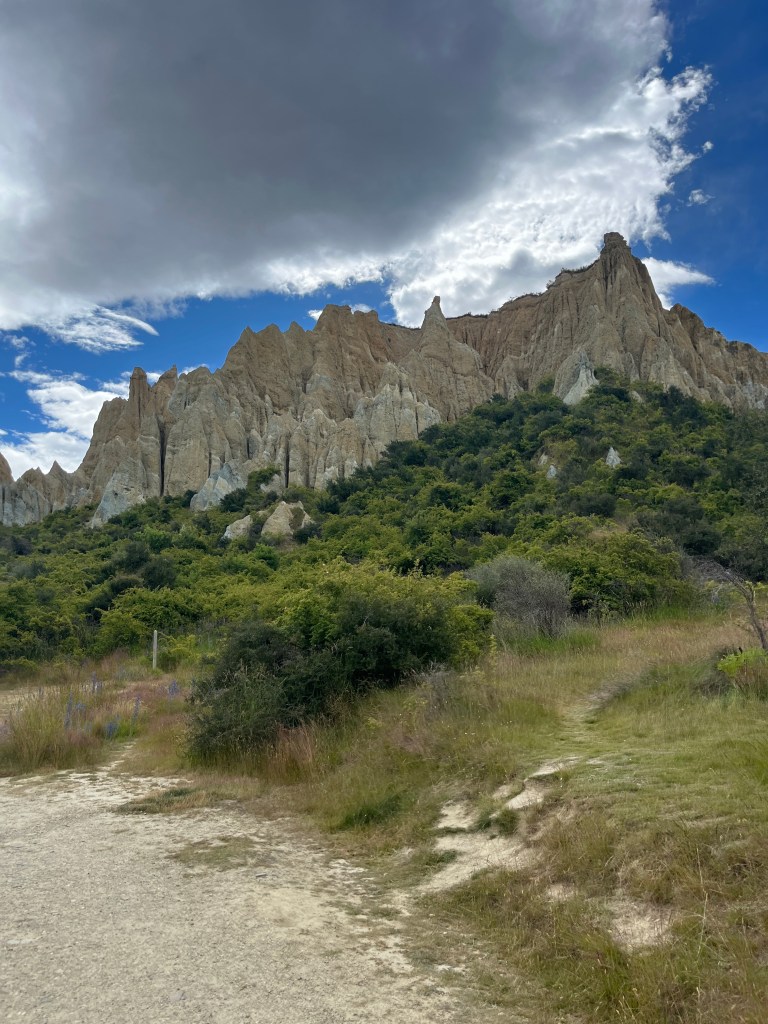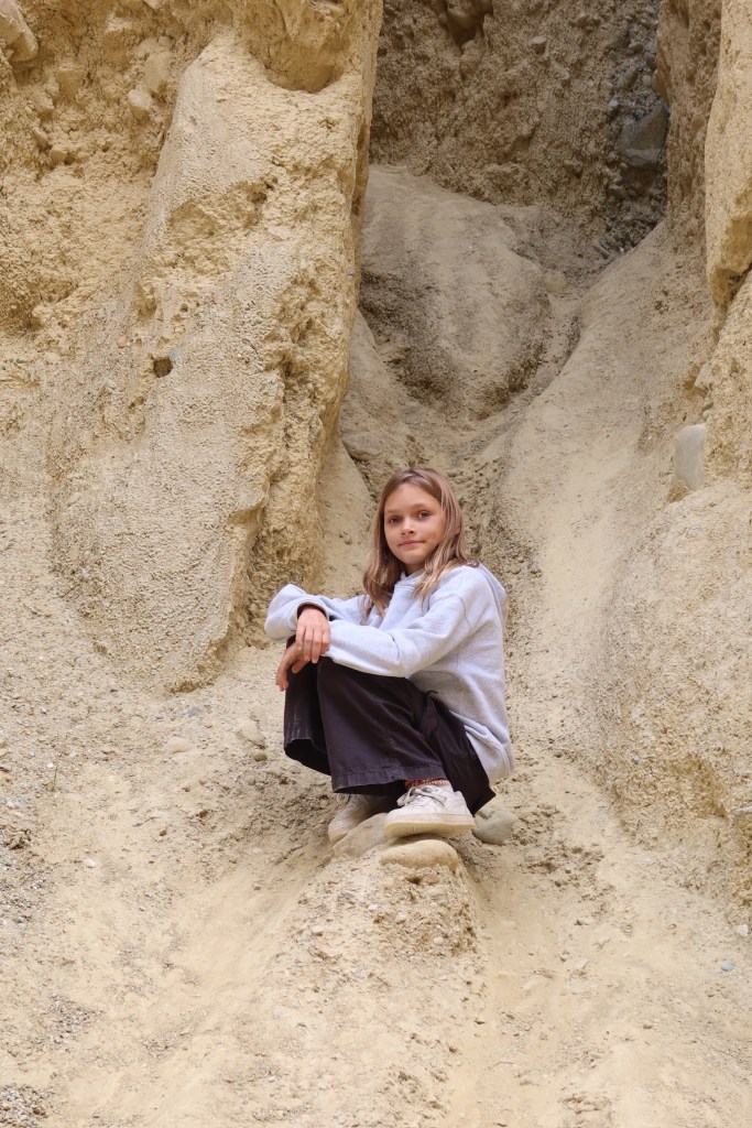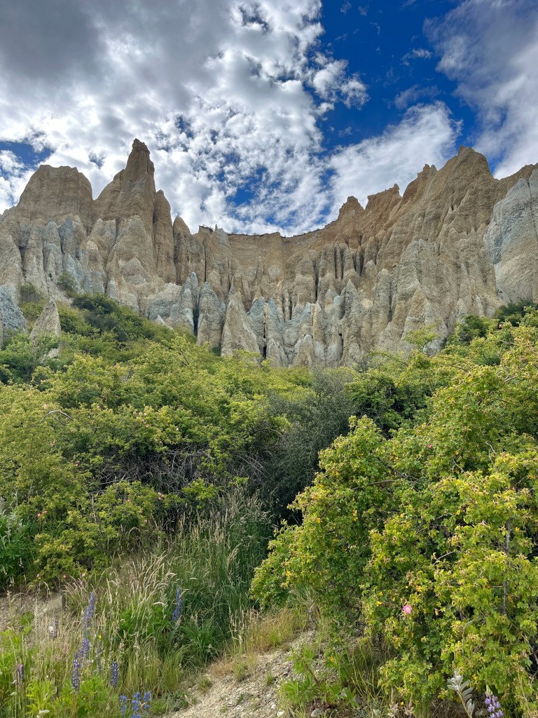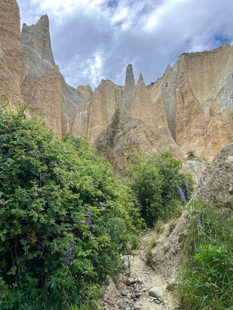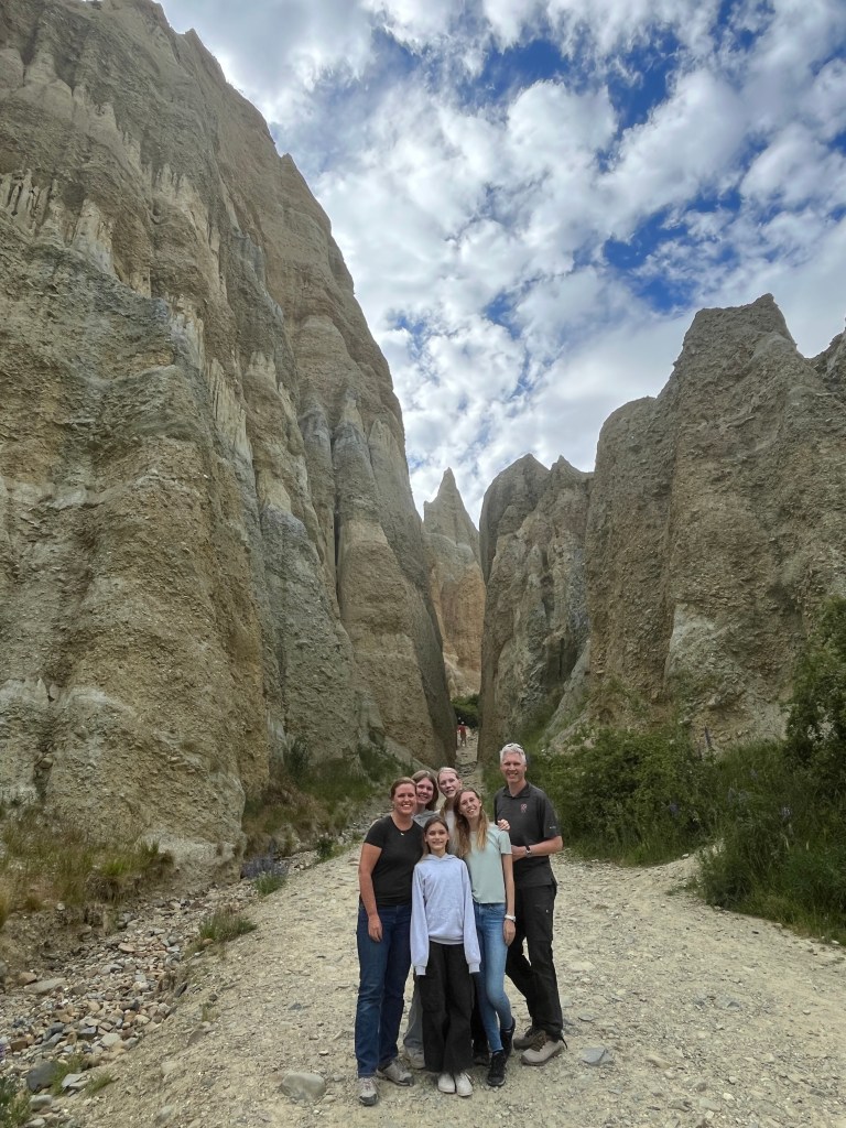 And then our last stop before we got to Twizel where we stayed for a few days was the Clay Cliffs. We almost skipped it because it was 5pm by the time we arrived and had already been a long day, but we are all so glad we rallied and went. It was a pretty short hike and the cliffs are stunning. They just jut out of the land like a huge cathedral in the middle of the land. There are some cliffs that you can see from the trail, but the best part was walking through a narrow into chute into an open area where the cliffs surround you by 360 degrees. Very cool!