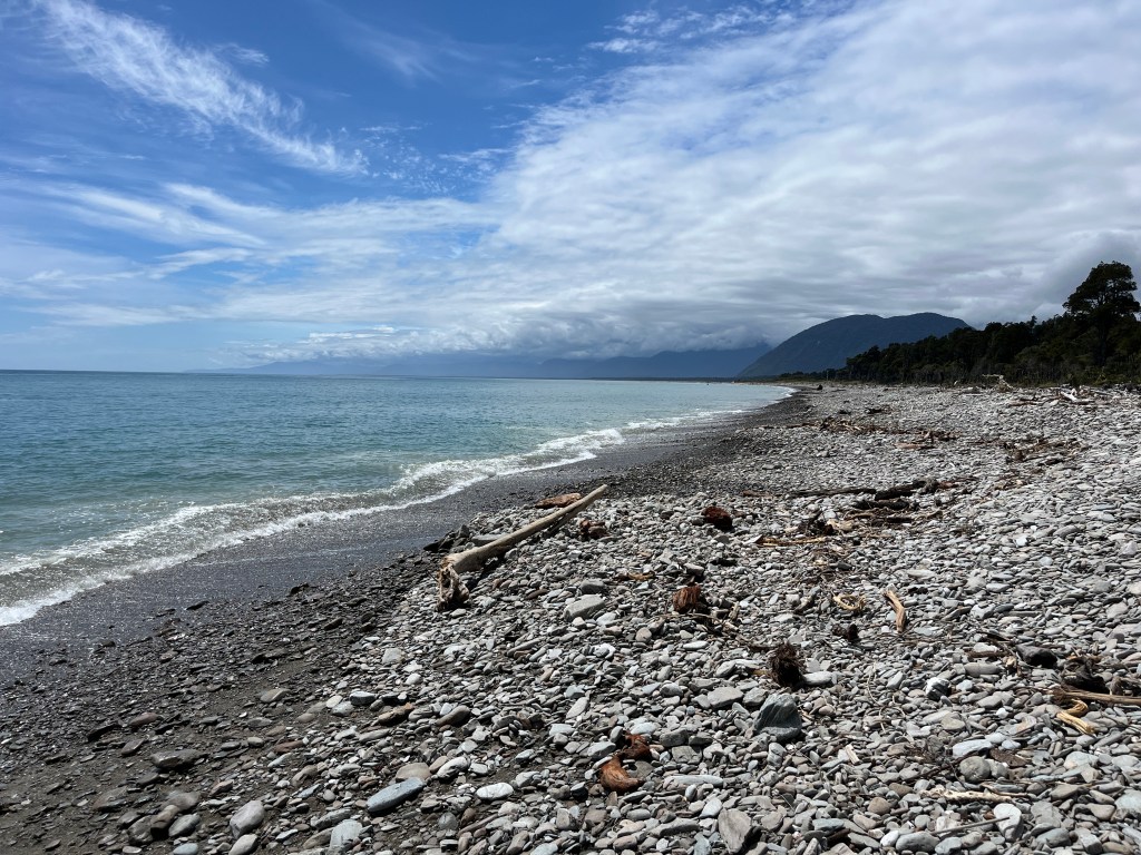 From there we drove to Jackson Bay where we ate lunch at the little food truck there and then took a walk through the forest to a beach. The beach was beautiful but the sandflies were not! Sandflies are a huge problem in the West Coast of New Zealand and it really sucks. They are super small and you don’t necessarily feel them biting you, but the next day you have super itchy bites all over your body. We bought bug repellent that seemed to have no effect on them at all. That was a big bummer during our stay in Haast and definitely hindered our desire to explore the area.