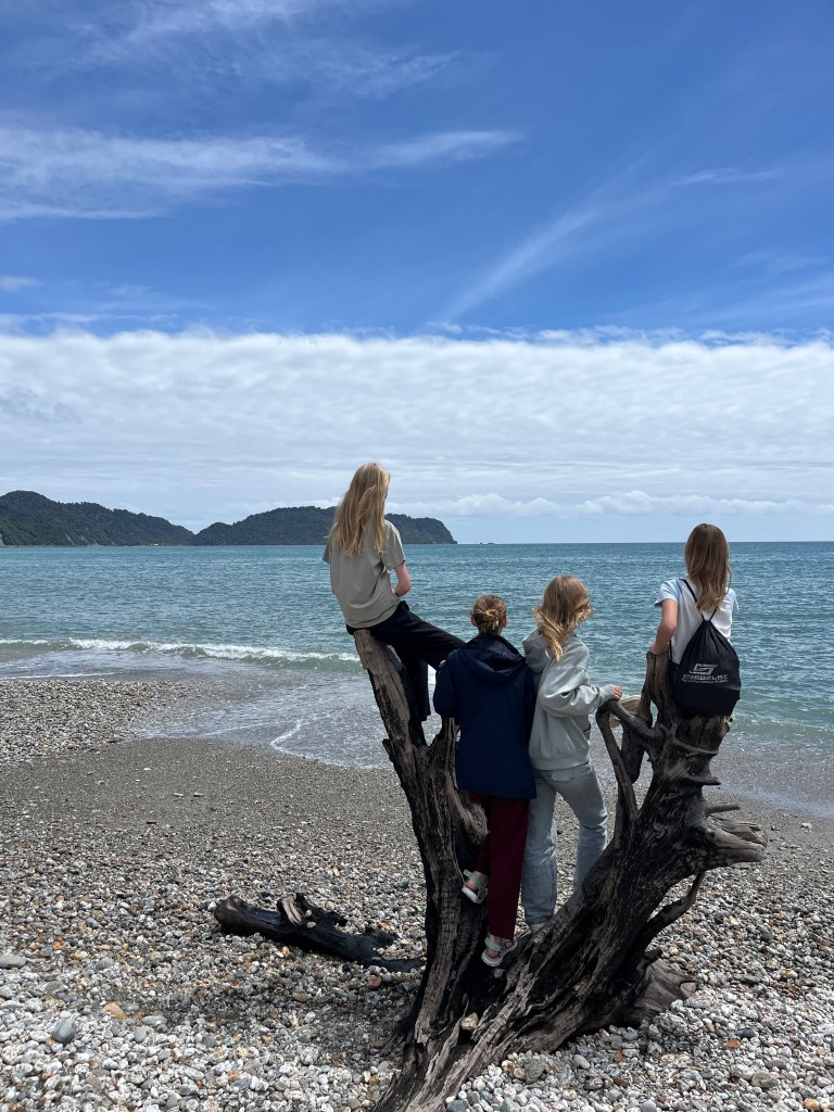 The next day, it was time to start school again. A two-week holiday can just fly by when you’re relaxing and swimming with dolphins and seeing some of the most beautiful scenery! 🙂 Our mornings were once again spent working, leaving just our afternoons free for exploration. But it also means everyone is a bit sluggish in the afternoons and not always eager for a big exploration, so one afternoon we set out at dusk in search of penguins at Monro Beach (no such luck but we did find a million sandflies again) and the other afternoon was spent relaxing at our place.