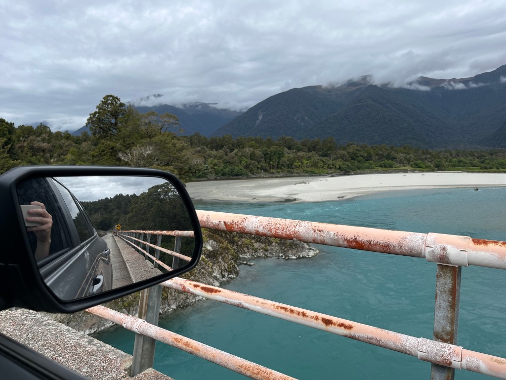 We spent four days just outside of the township of Haast at the Haast Beach Motel. We had our own little apartment and we stocked up on food ahead of time, which was good because there was only one small grocery store and a couple of restaurants in town. On Sunday we drove towards Jackson Bay, about 40 minutes south of Haast Beach. We stopped at a beach where the hotel owner had said you can often spot Hector’s dolphins from the shore. And he was right! We saw a ton of them swimming back and forth, quite close up. Unfortunately, I couldn’t get any photos of them because of the angle, but it was very cool! Such magical, peaceful creatures to watch.