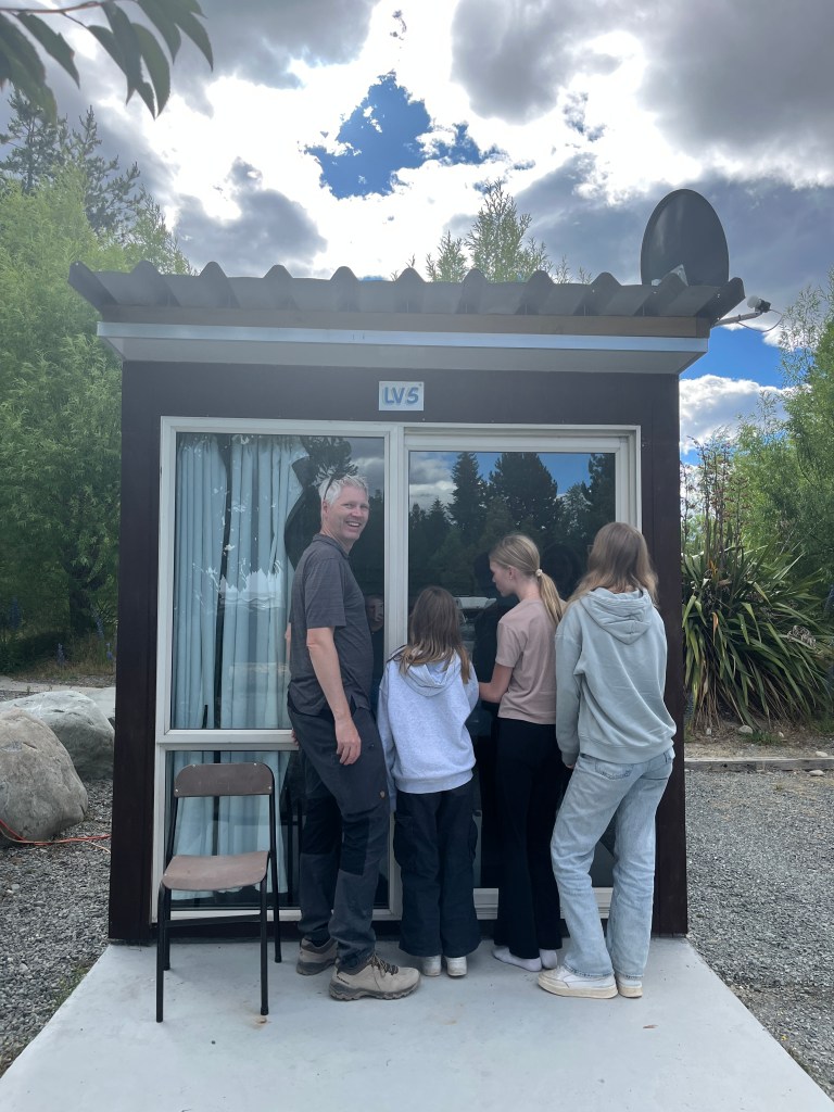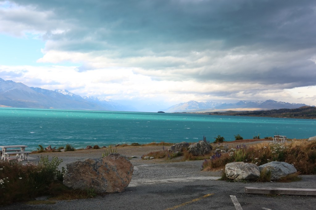 We spent four nights in miniature cabins at Lake Ruataniwha Holiday Park & Motels in Twizel, a small town in the Canterbury Region of the South Island of New Zealand which was a great jumping off point for exploring the area. When we arrived, we were quite surprised by the size of the two cabins we had. We knew there were shared bathrooms, but didn’t really realize that they were two 1/2 shipping containers with a bunkbed and single bed and that’s it. Very cozy accommodations! Having shared bathrooms and a communal kitchen is a bit of a pain, but it was nice to be “camping” again because of how much time you spend outdoors. The campground was located right on a lake which was really nice.