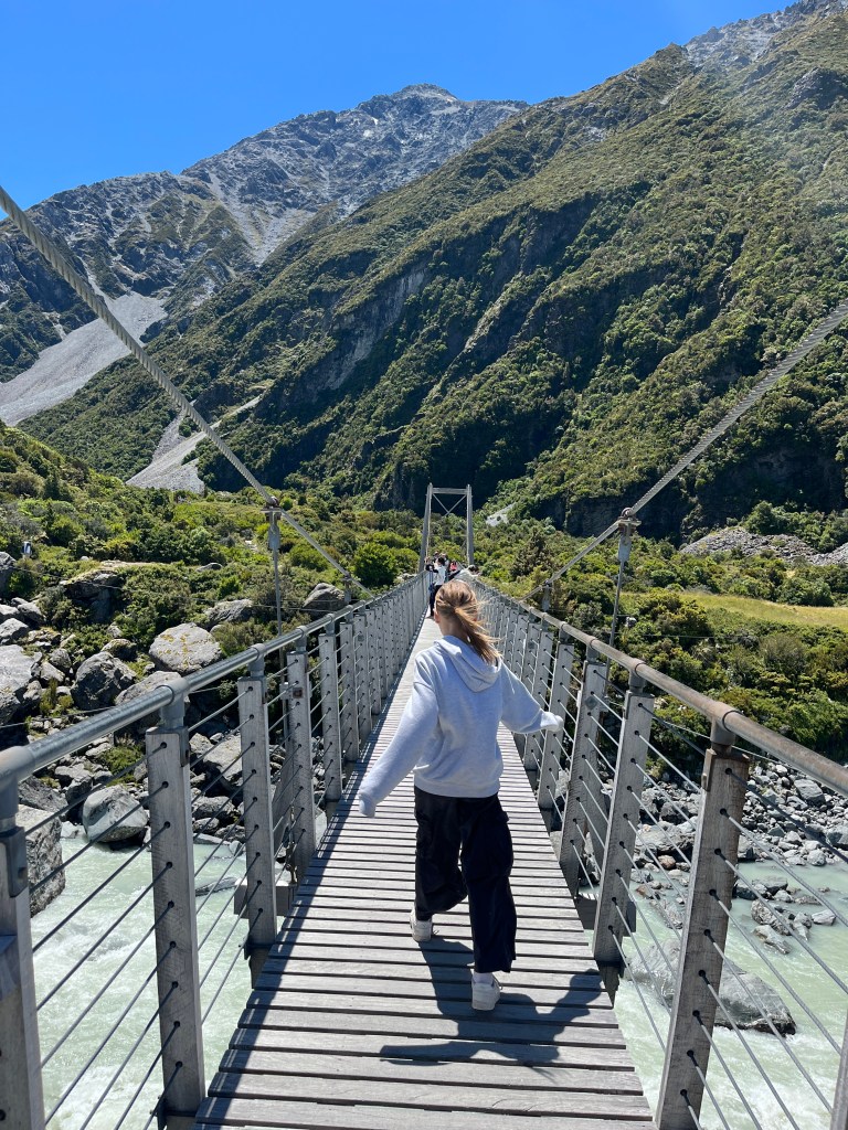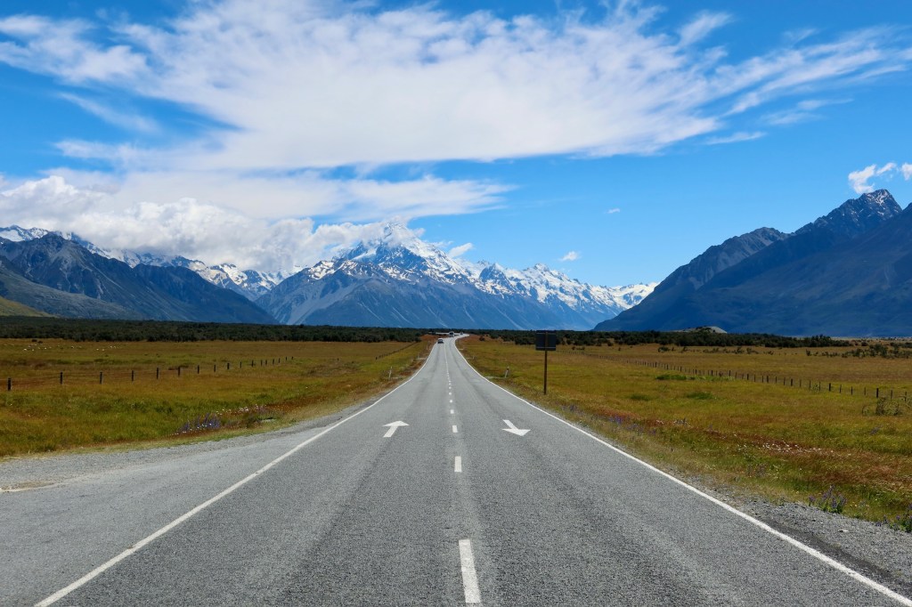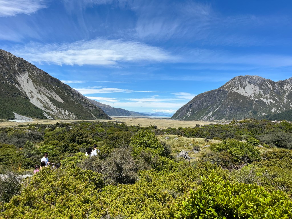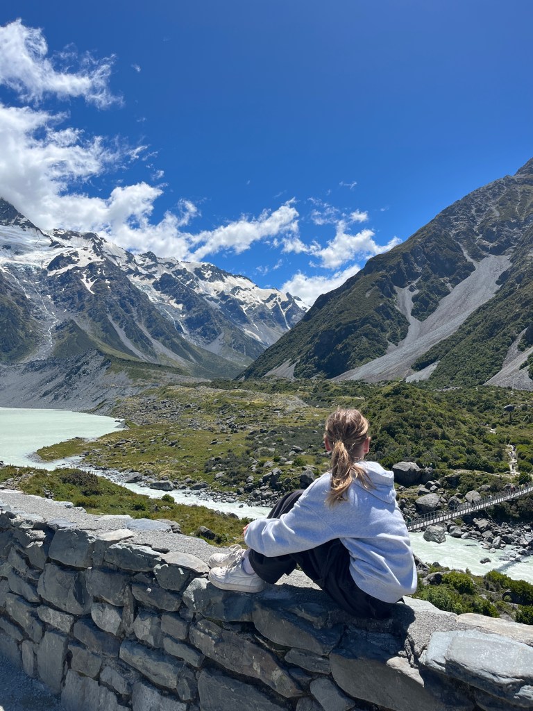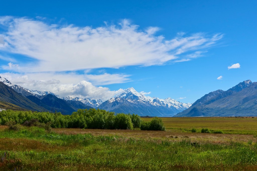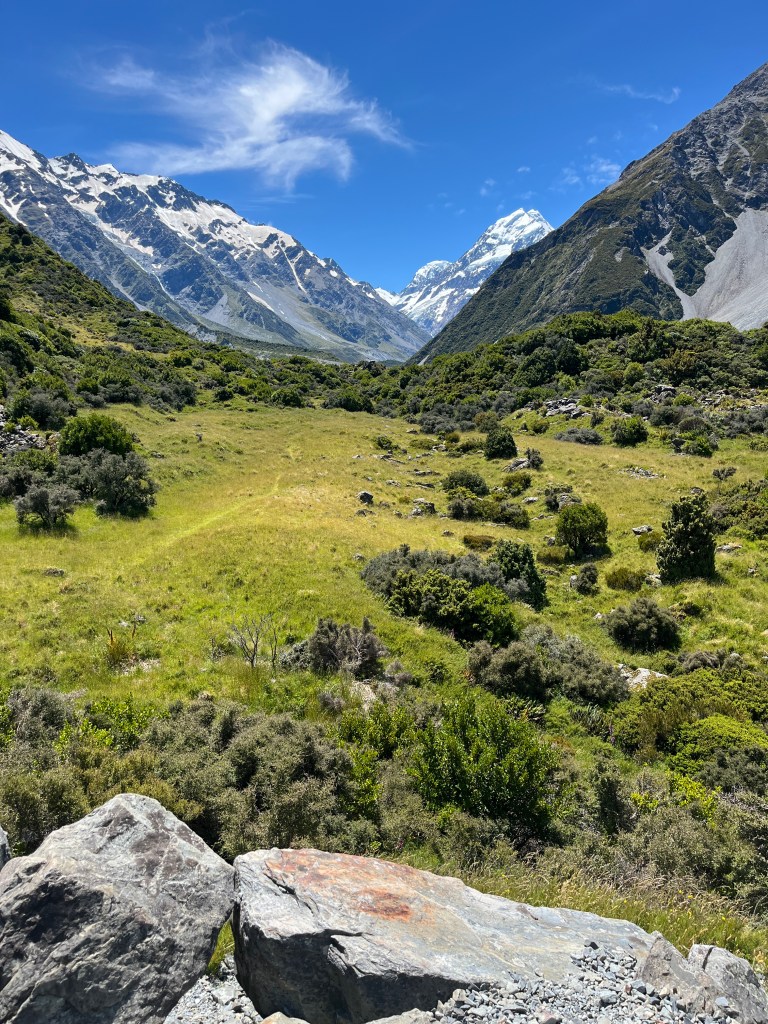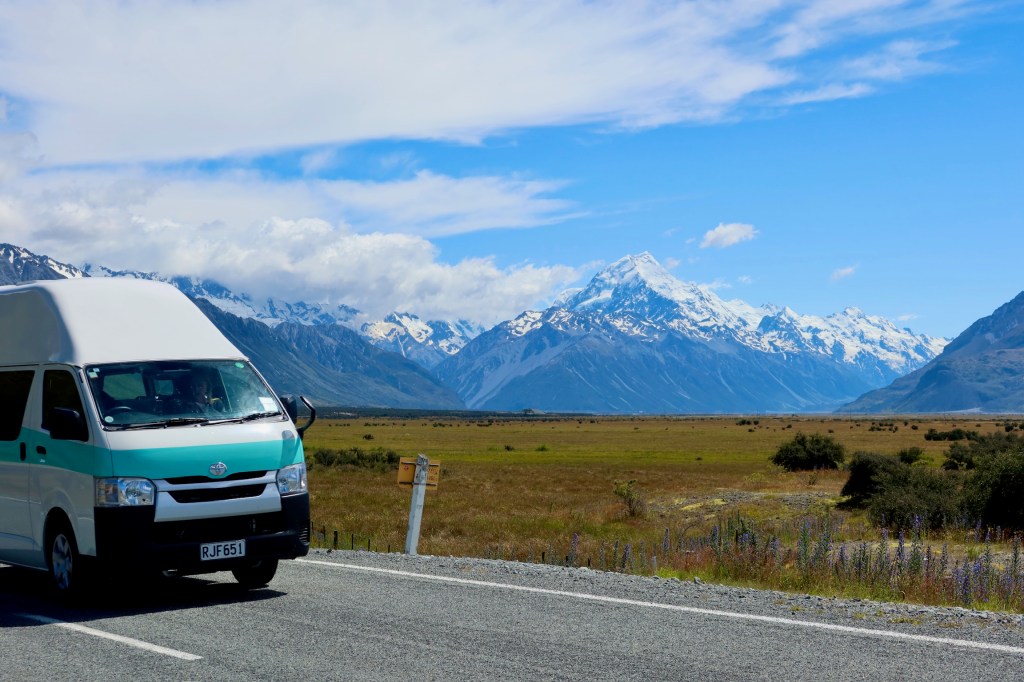 From there we drove towards Mt Cook and saw a hitchhiker on the side of the road. We picked him up, and he was a very nice Spanish man who has been travelling full-time for over 18 months. It was so fun to compare places we had in common and swap stories. He had just spent an extended period of time in Australia, so has some good tips for us. As we approached the parking lot, we were lucky enough to get some amazing views!