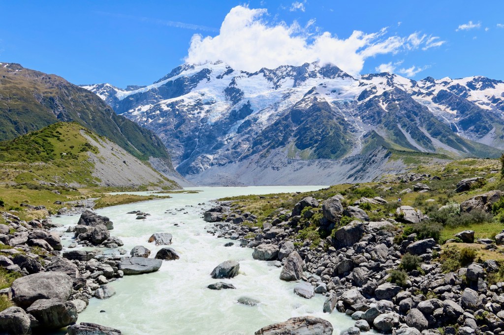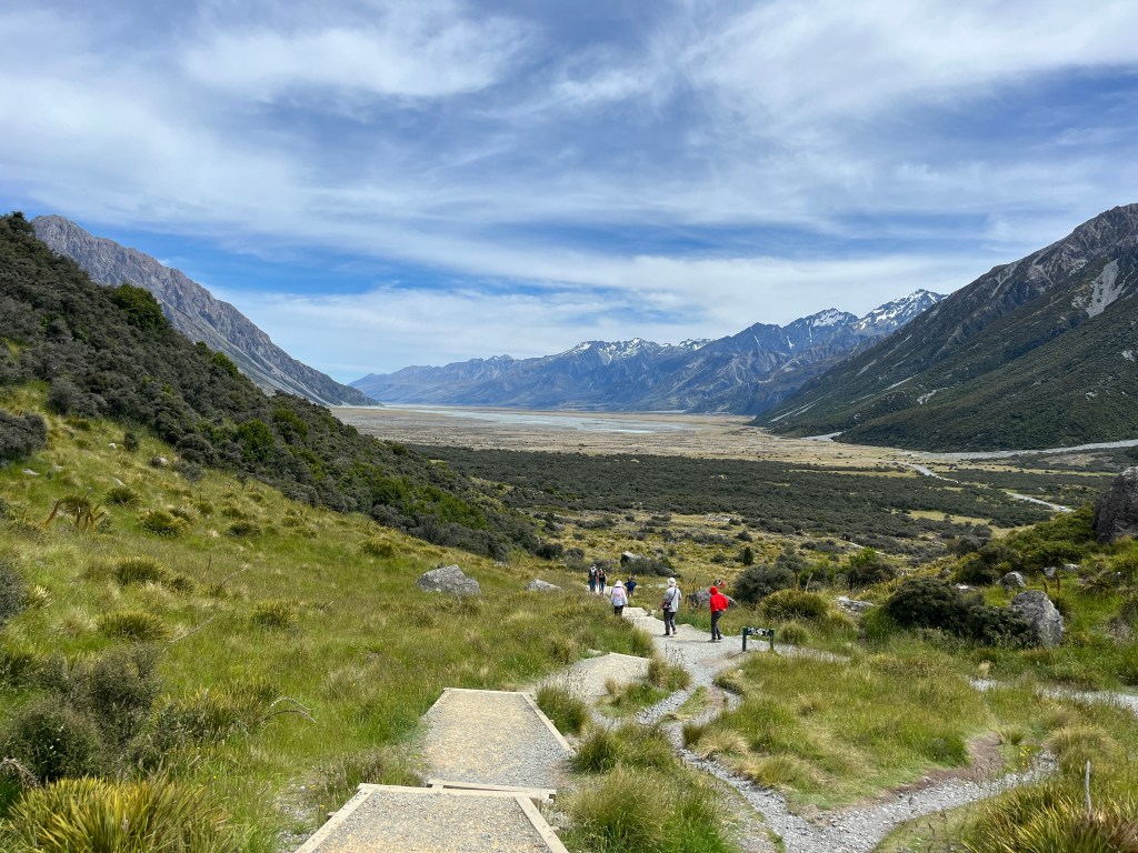 We decided to walk to Kea Point for stunning views of Aoraki. It was an easy hike that was well worth it! Not only did we have views of Mt Cook, but also of Mueller Glacier lake and the glaciers that feed it. Incredible!