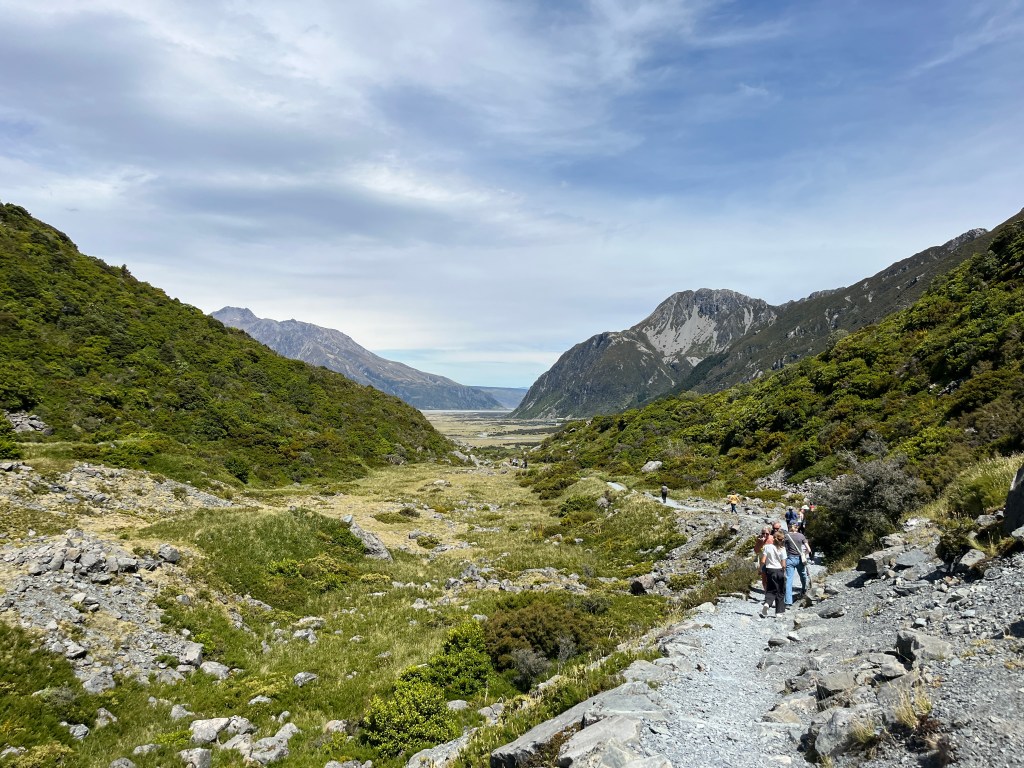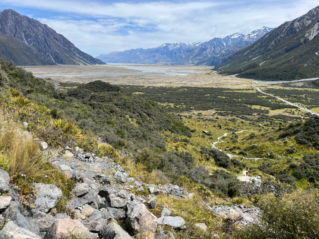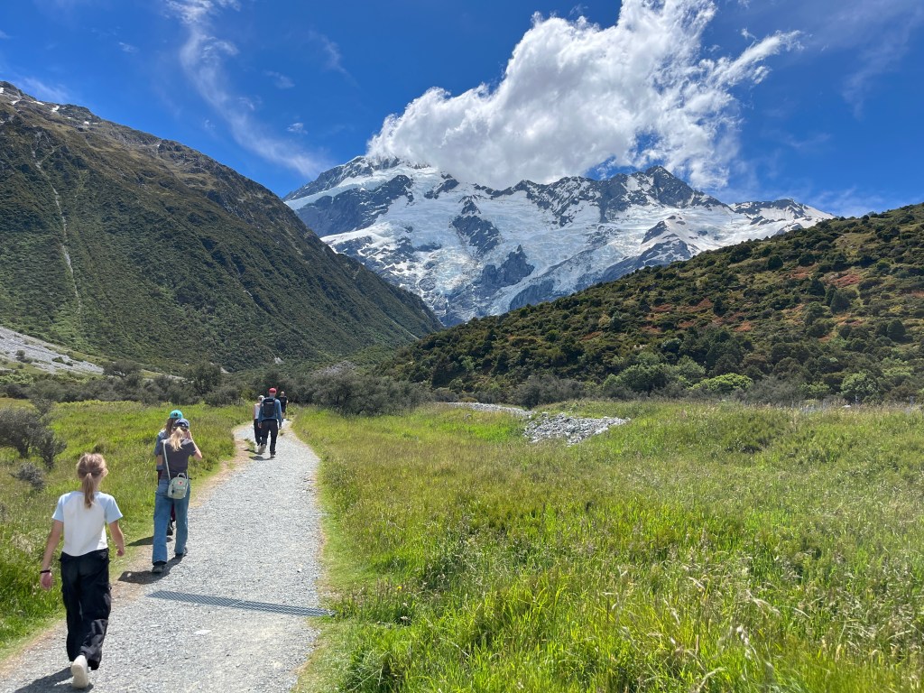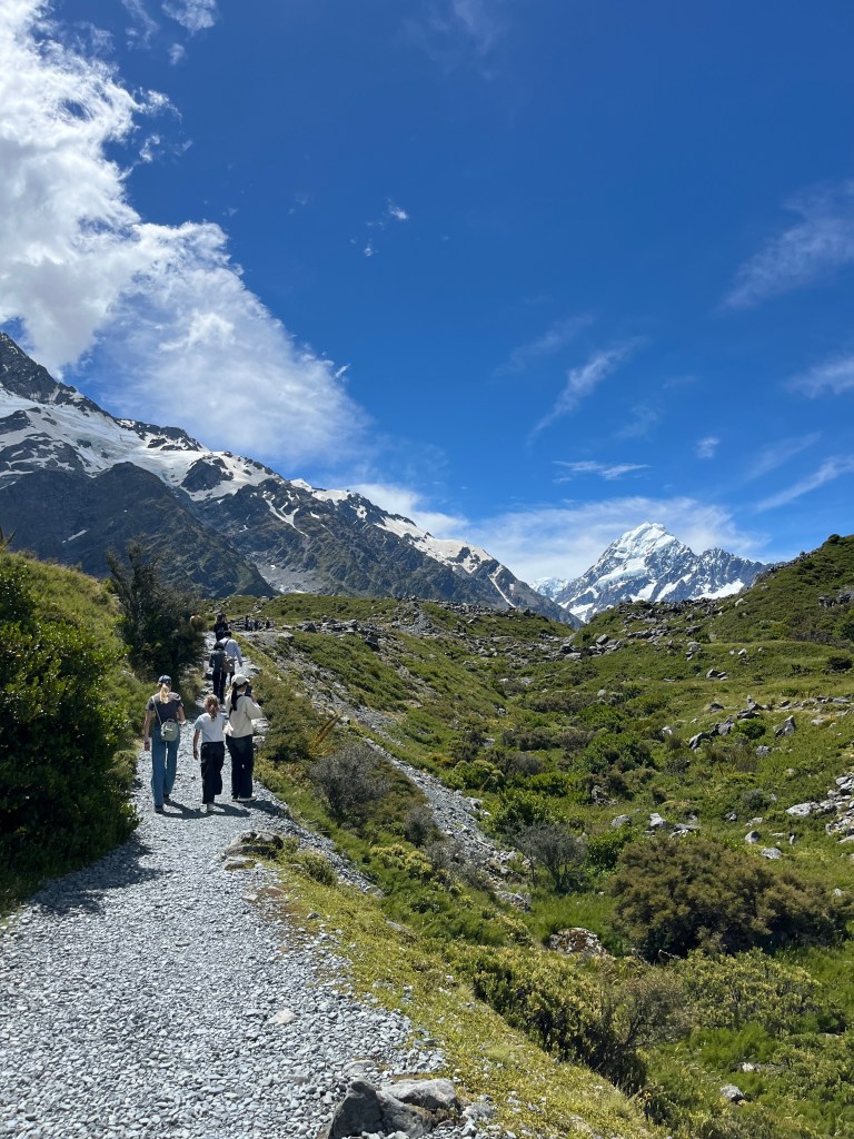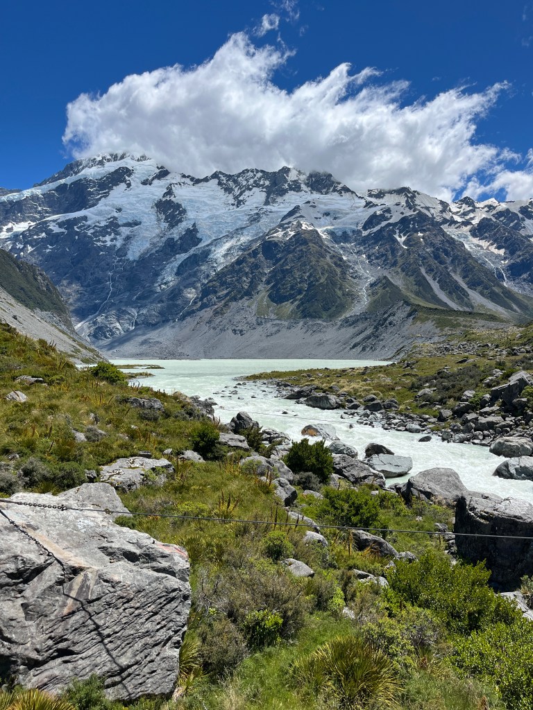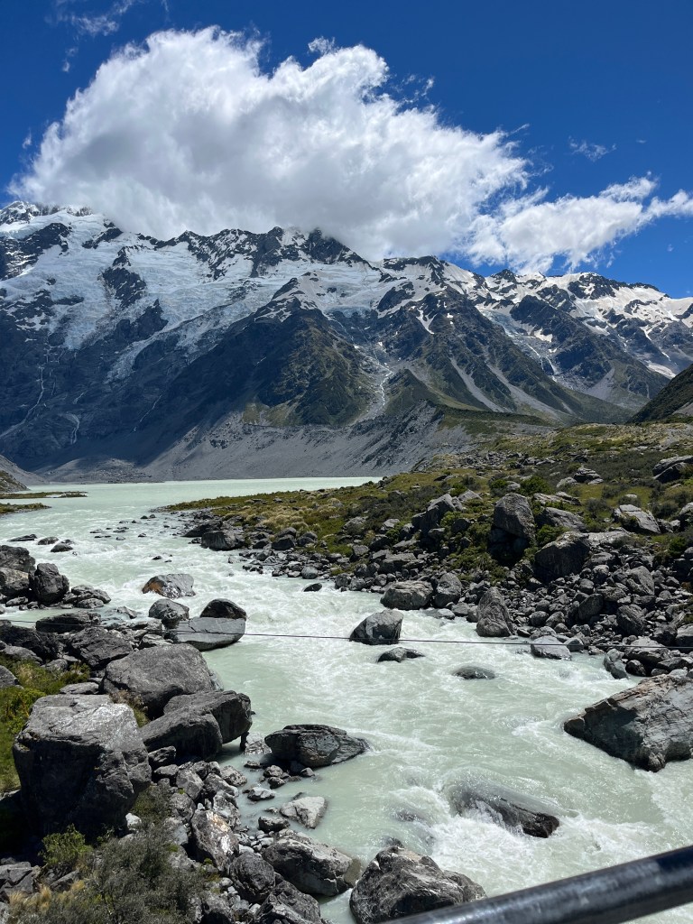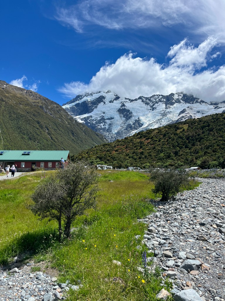 We went on a couple of walks. The first one, Hooker Valley Track, was sadly closed less than halfway in, so we just went as far as we could. Usually you can walk all the way to Hooker Lake which offers a close up look at Mt Cook. It was still a beautiful walk!