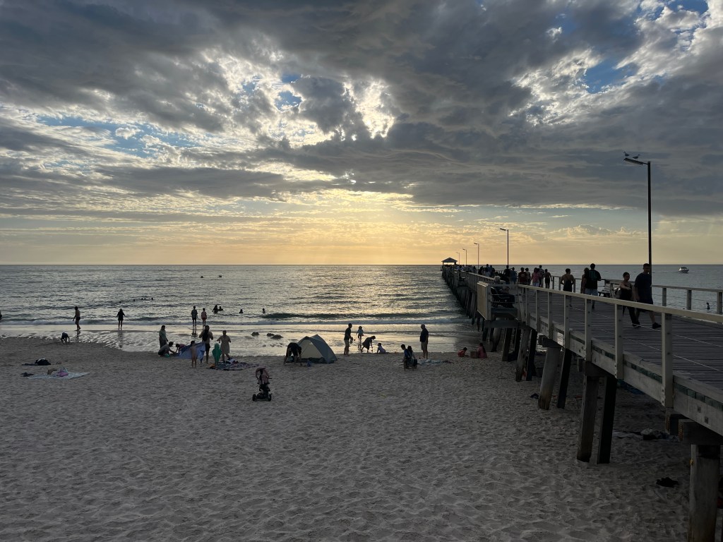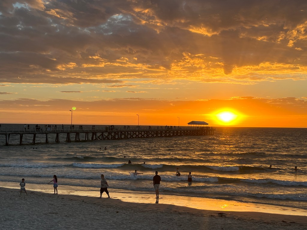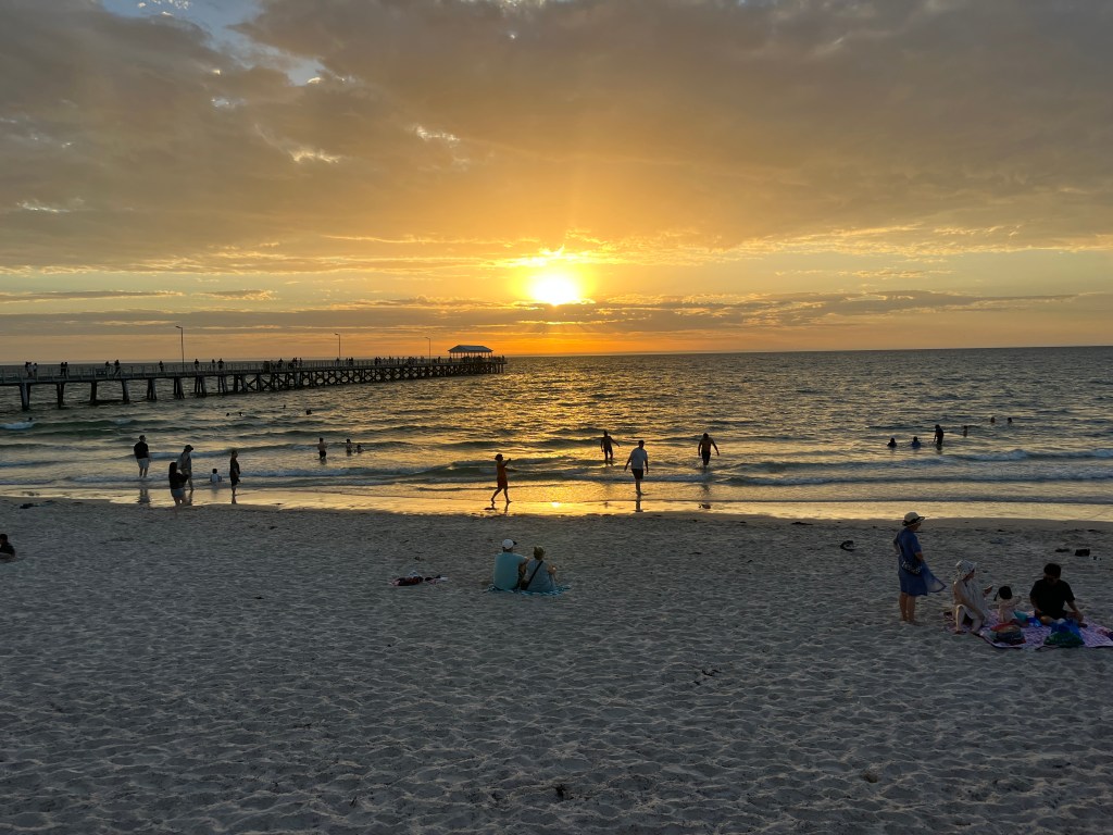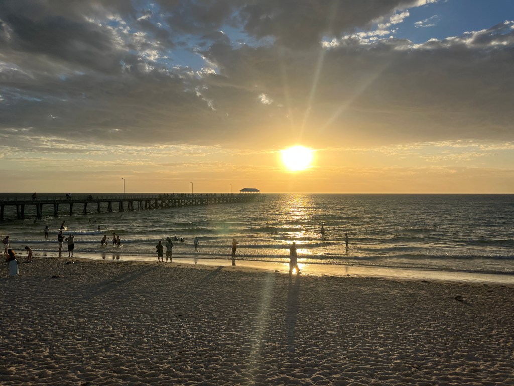 Then that afternoon we drove out to Henley beach for some beach time, dinner and a beautiful sunset. It was lovely! The beach was wide and sandy, there was a pier for jumping in and even a few dolphins were spotted, there was a Zumba dance party happening that the girls joined in on and we ate dinner at a delicious Mexican restaurant. It was really nice to see so many people out–there was a great atmosphere around the whole place. It felt like the kind of place we could easily have spent a couple of weeks.