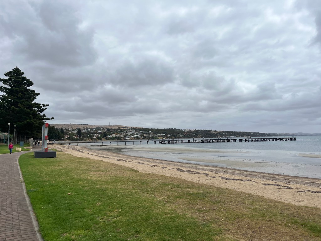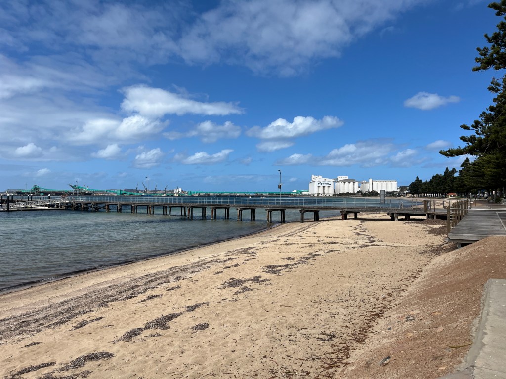 It turned out to be a shorter drive than I had anticipated, but we didn’t really want to spend the afternoon hanging out at the motel. So, we had a late lunch and then did some schoolwork at the local library before going to the community pool to cool off. Port Pirie is a confusing town. It is empty and desolate while also having some really wonderful infrastructure, such as the library and beachfront area.