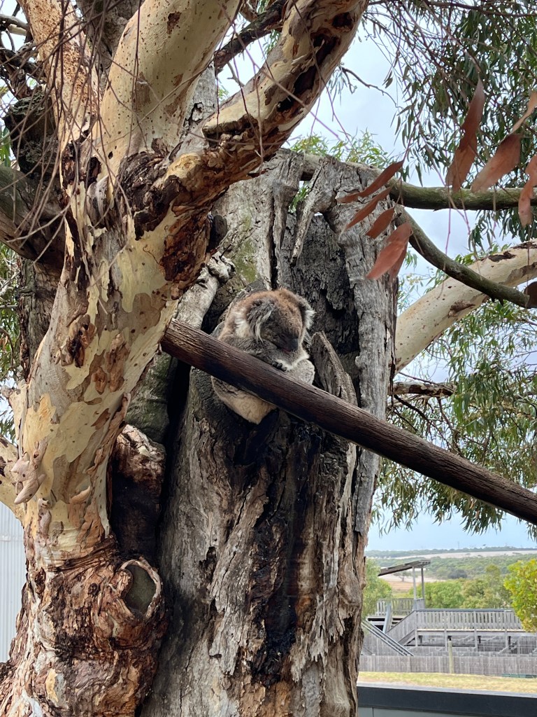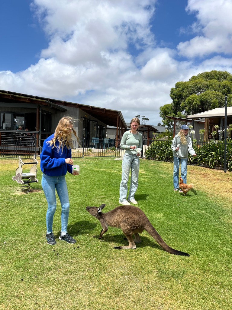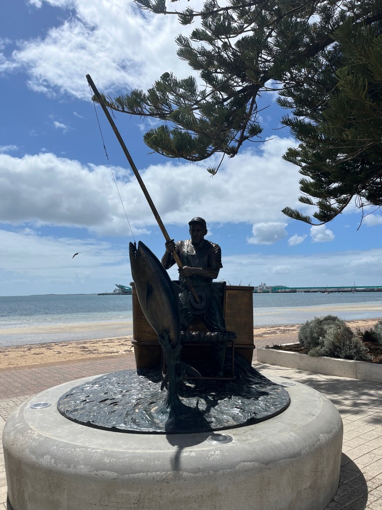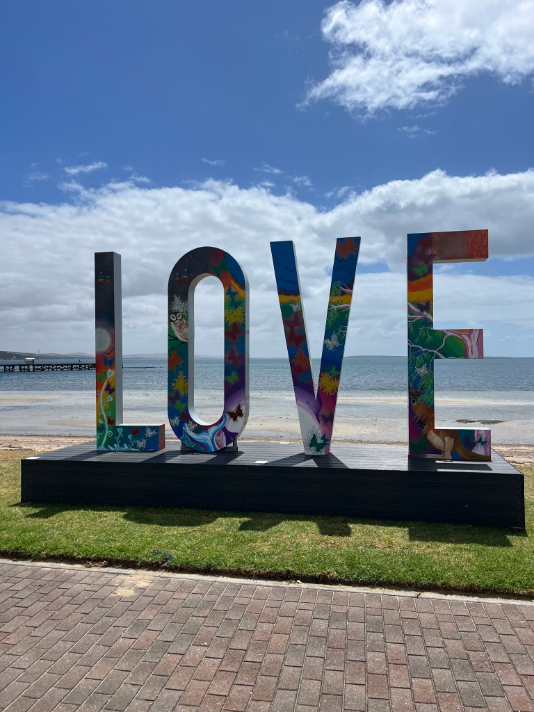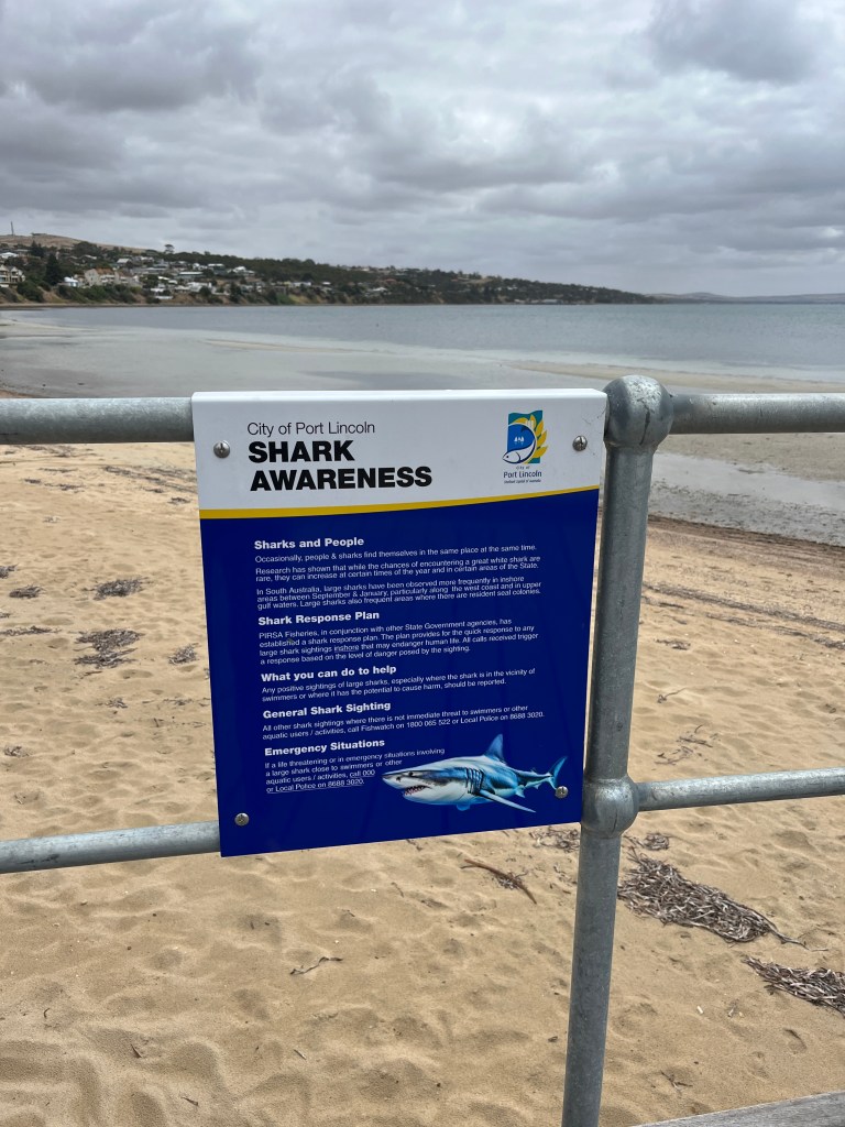 We stayed in Port Lincoln for four nights, at a nice apartment that felt like a relief after our last place! Port Lincoln is a larger town, right on the waterfront, with a cute downtown and a few fun things to do nearby. On Thursday morning, Steffen and I walked over to the Port Lincoln Visitor Information Centre to gather some more info. This town is known for its shark cage diving which Steffen has now put on his bucket list, but we did not do during this visit. It is very pricey and somewhat scary. 😉