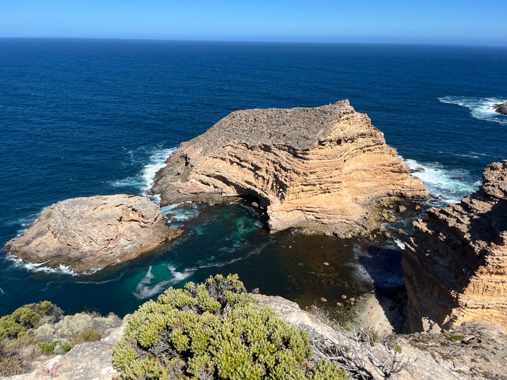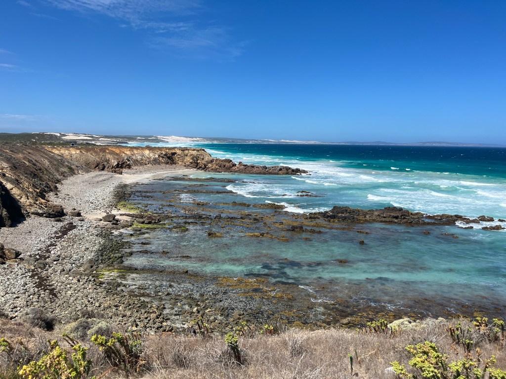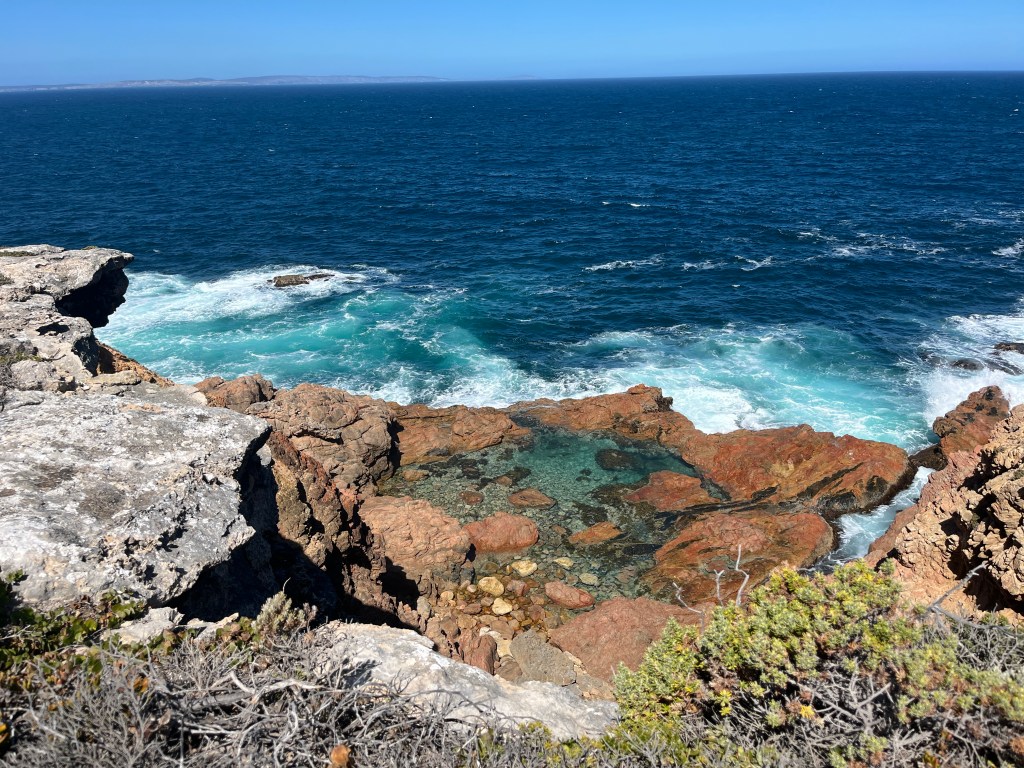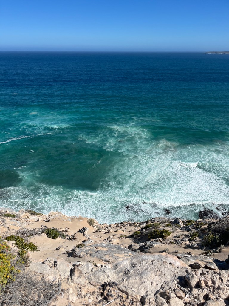 And then we spent some time driving along Whaler’s Way, taking in some incredible views. We thought that we could swim at the first stop, but the ladder and path down to the swimming hole was way too sketchy for us! So we just drove along the peninsula and enjoyed the gorgeous landscape.